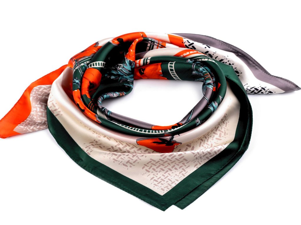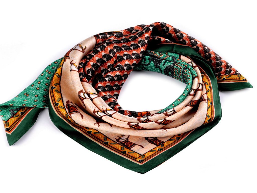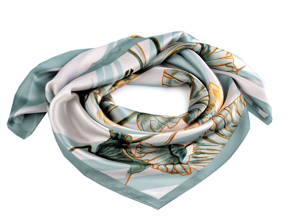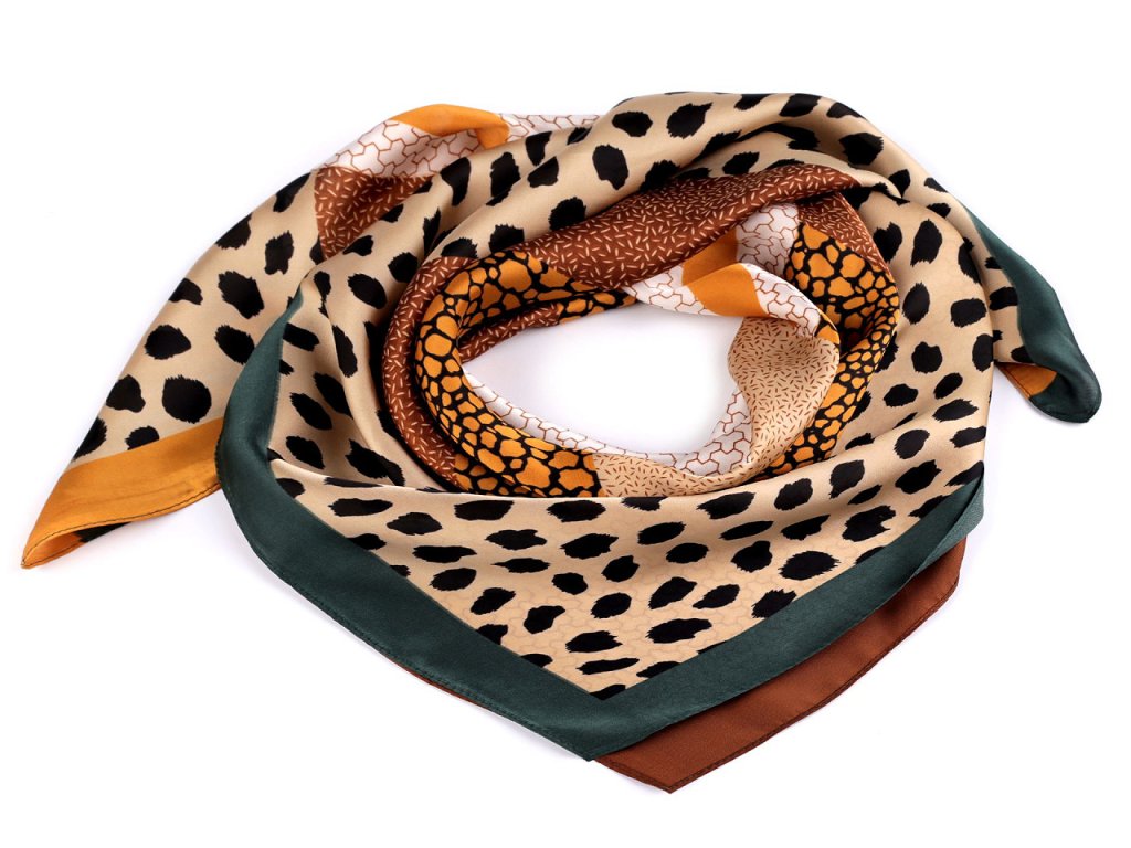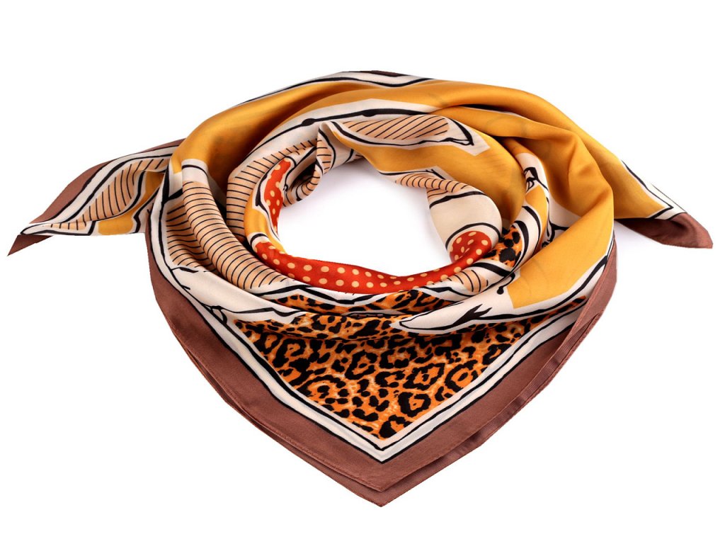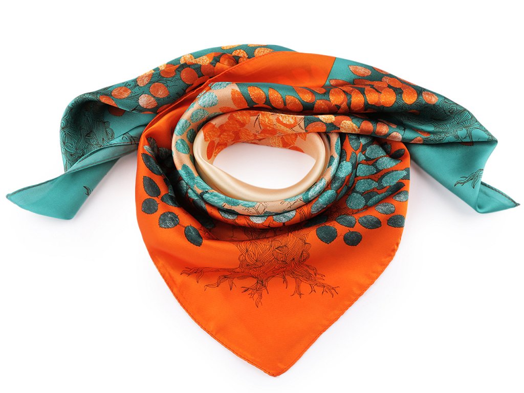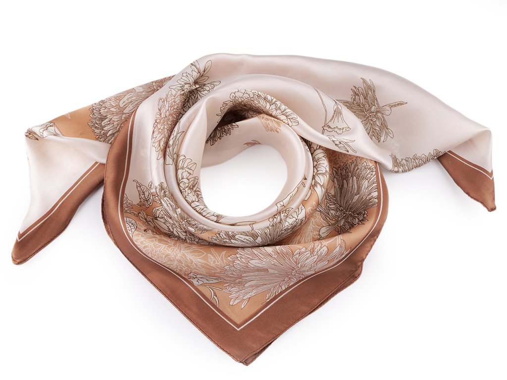 Saténový šátek využijete k jakémukoliv oblečení. Hodí se na každodenní nošení. Jeho příjemný materiál vás bude doslova hýčkat. Šátek můžete uvázat do slušivého uzlu, který podtrhne dokonalost vašeho oděvu. Některé šátky mají špatné štítky, skutečné složení je polyester. Omlouváme se za toto nedopatření a děkujeme za pochopení.- Šířka: 70 cm