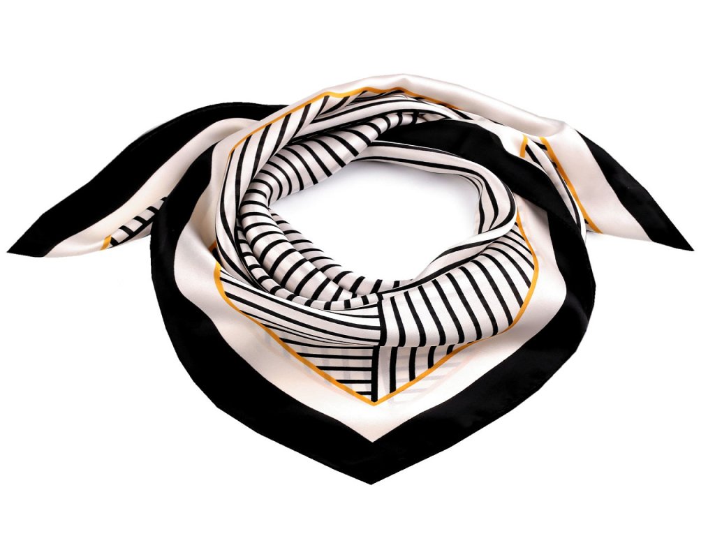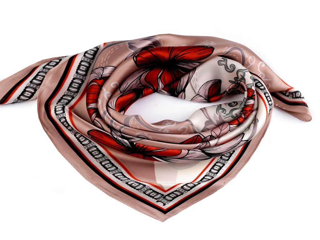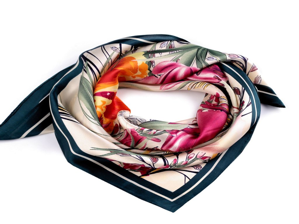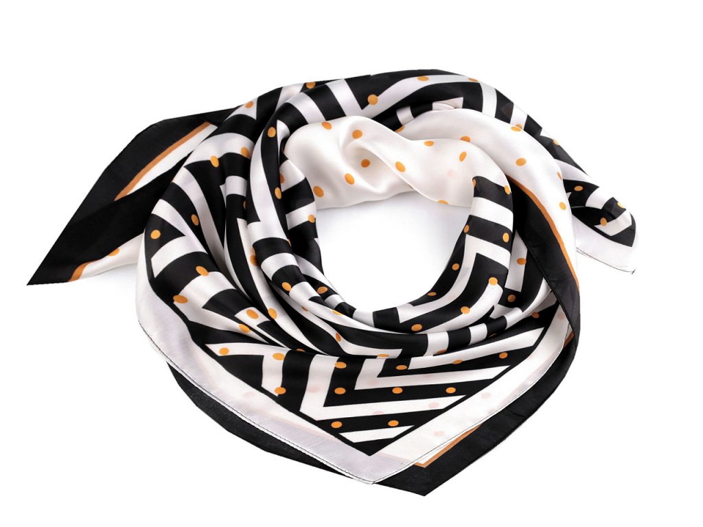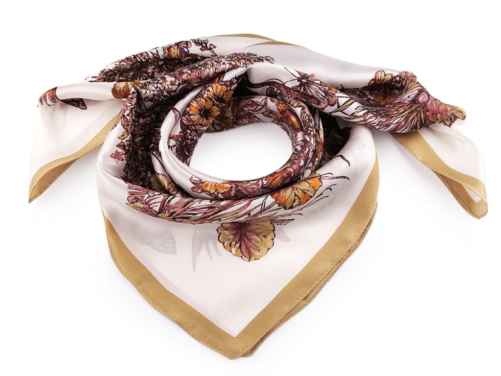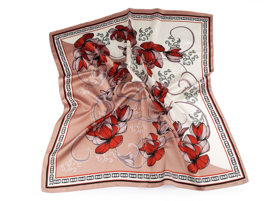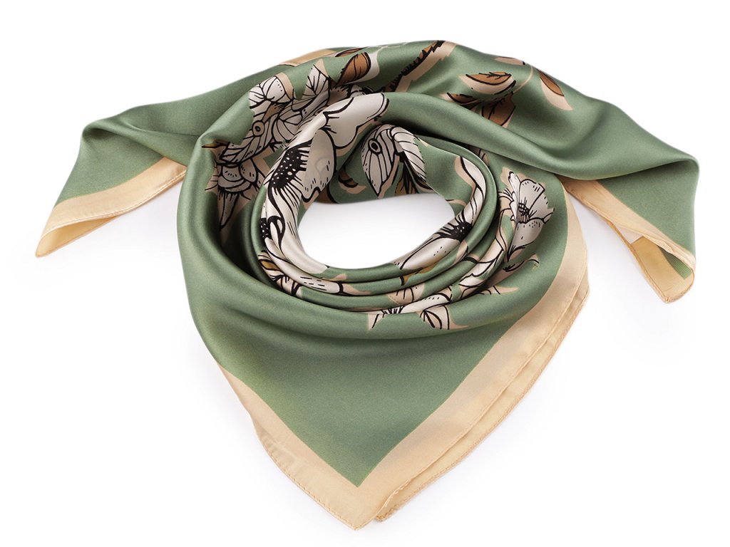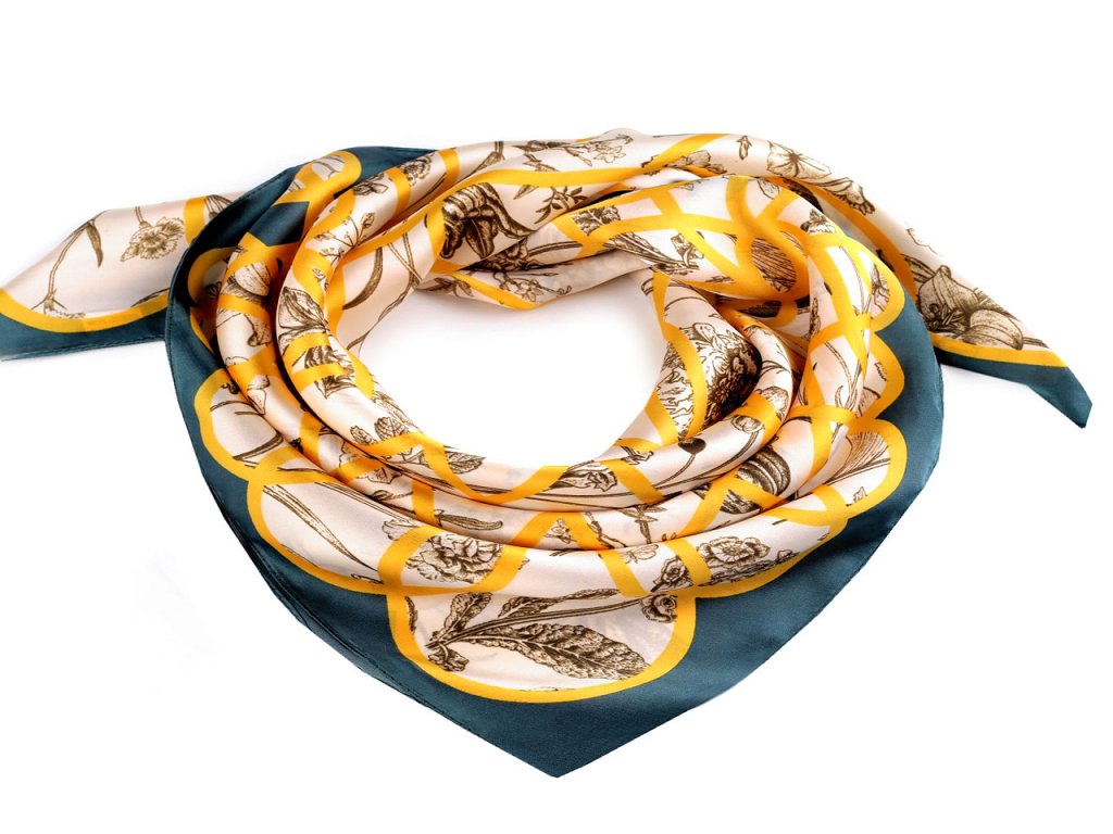 Saténový šátek využijete k jakémukoliv oblečení. Hodí se na každodenní nošení. Jeho příjemný materiál vás bude doslova hýčkat. Šátek můžete uvázat do slušivého uzlu, který podtrhne dokonalost vašeho oděvu. Některé šátky mají špatné štítky, skutečné složení je polyester. Omlouváme se za toto nedopatření a děkujeme za pochopení.- Šířka: 70 cm