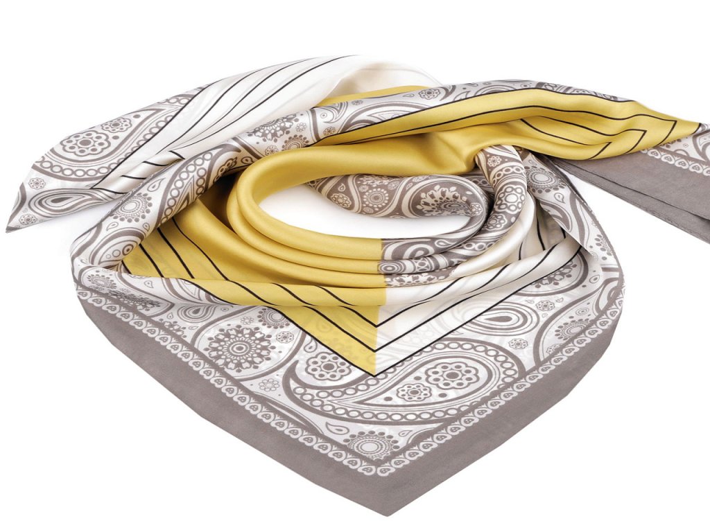 Saténový šátek s motivem paisley využijete na každodenní nošení, působí elegantně. Jeho příjemný materiál je hebký na dotek. Můžete ho uvázat do slušivého uzlu, který podtrhne eleganci vašeho oděvu. Některé šátky mají špatné štítky, skutečné složení je polyester. Omlouváme se za toto nedopatření a děkujeme za pochopení.- Šířka: 70 cm