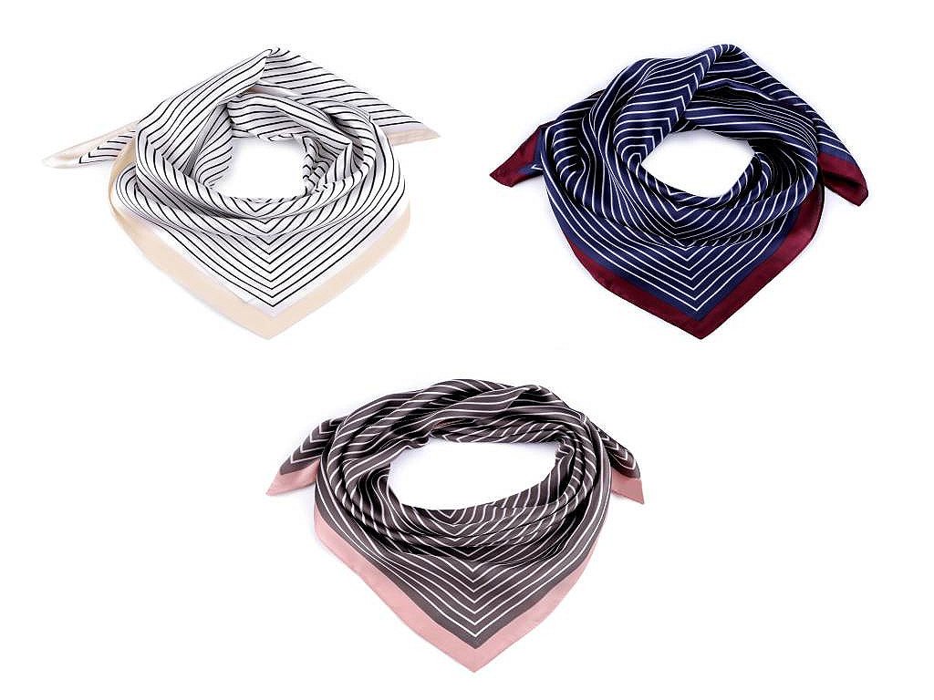 Saténový šátek s jemnými proužky podtrhne váš jednoduchý elegantní styl. Jeho příjemný materiál vás bude doslova hýčkat. Můžete jej vázat různými způsoby. Oživíte s ním jednobarevné sáčko, halenku i tričko. Je vhodný do zaměstnání i pro volný čas.