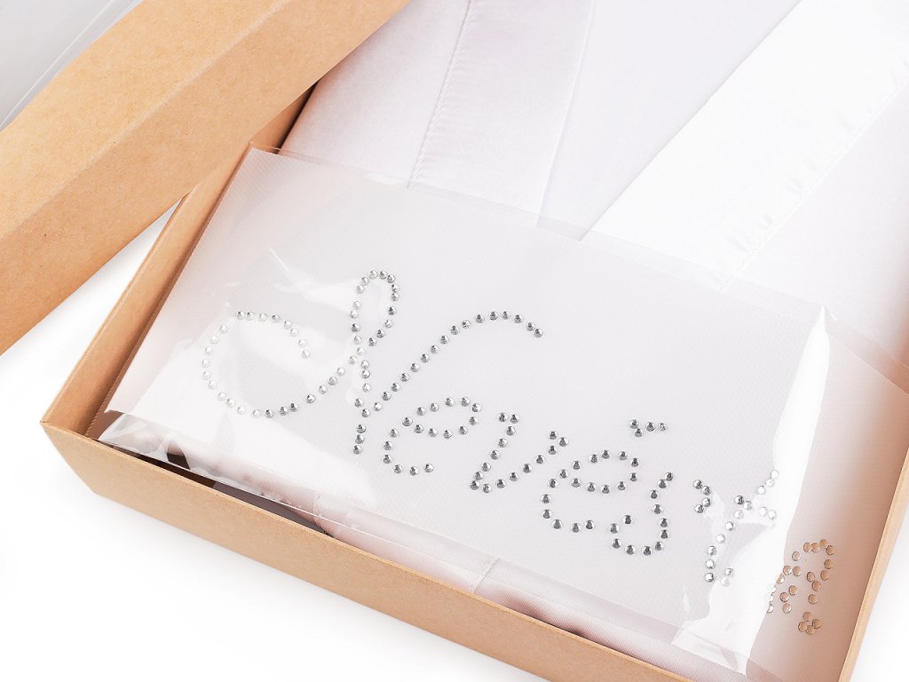 Saténový župan s krátkým rukávem zalichotí každé postavě. Pro nevěsty je jejich svatební den výjimečný a župánek při přípravách zajistí pohodlí. Zároveň bude nádherným doplňkem videí a fotografií ze zákulisí příprav. Součástí balení je hot-fixová kamínková aplikace s nápisem "Nevěsta" či anglicky "Bride". Nevěsta se může sama rozhodnout, jestli použije župan bez aplikace, nebo si ji na něj nažehlí. Návod je uvnitř balení. V pase se župan zavazuje saténovým páskem. Župan je zabalený v průhledné dárkové krabici. Rozměry: Délka županu: 92 cm Obvod přes prsa: 124 cm Obvod přes boky: 124 cm Délka rukávu: 27 cm Rozměry kamínkové aplikace jsou cca 5,5 x 18,5 cm.- Dárkové balení