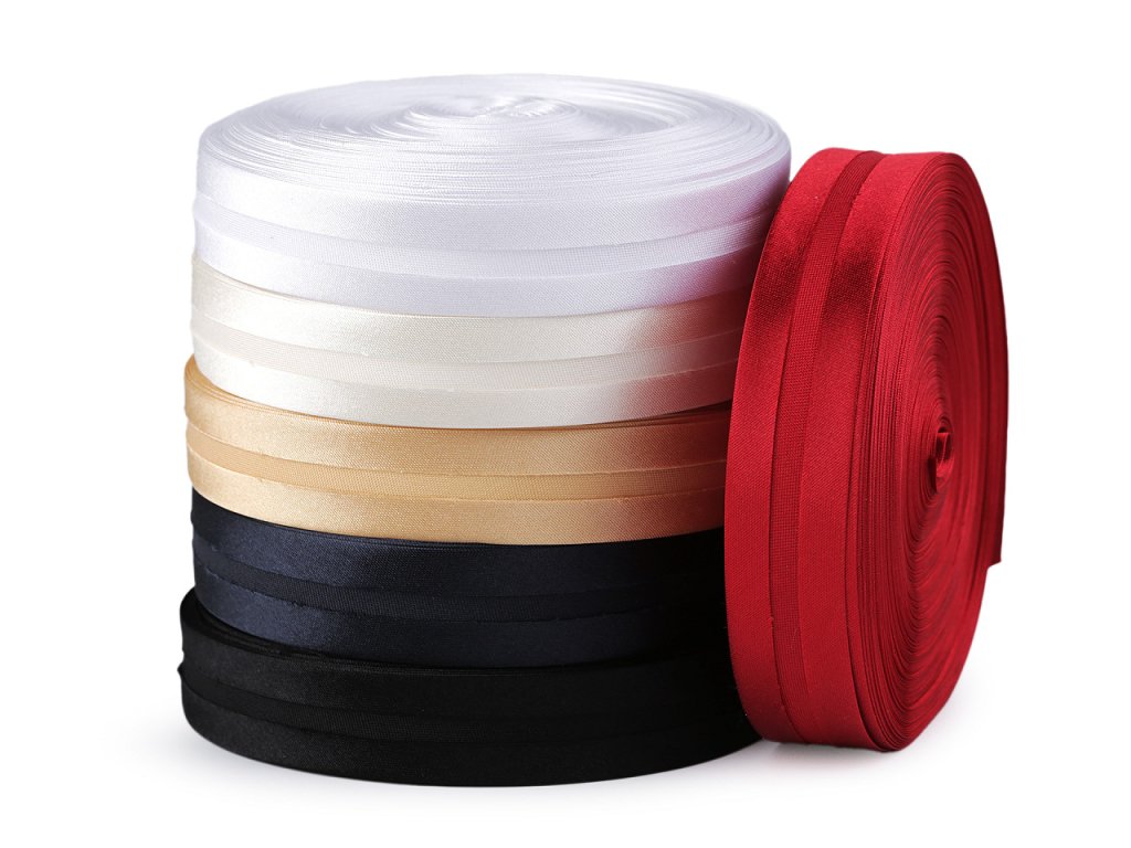 Saténový šikmý proužek využijete k olemování a začištění oděvů a spodního prádla, kde vynikne jako jemný a sofistikovaný detail. Můžete ho použít i jako ozdobný prvek na tašky a kabelky, ubrusy nebo povlaky na polštáře. Lehce pruží po délce i po šíři. Po našití má poloviční šíři - 10 mm.- Šíře: 20 mm