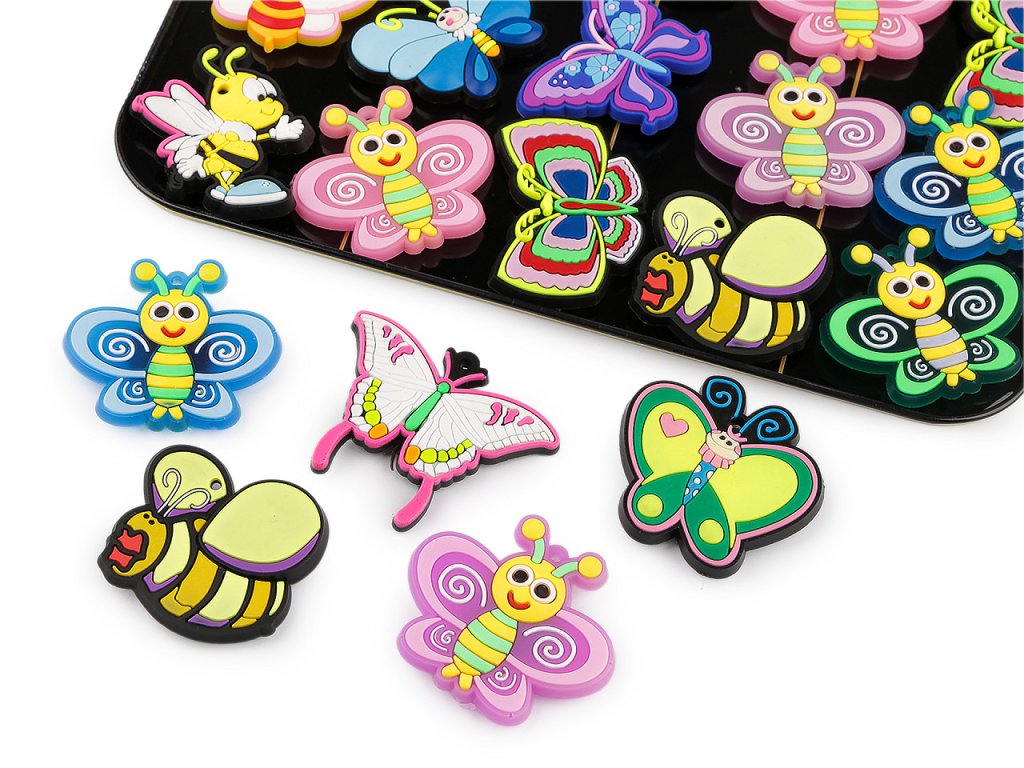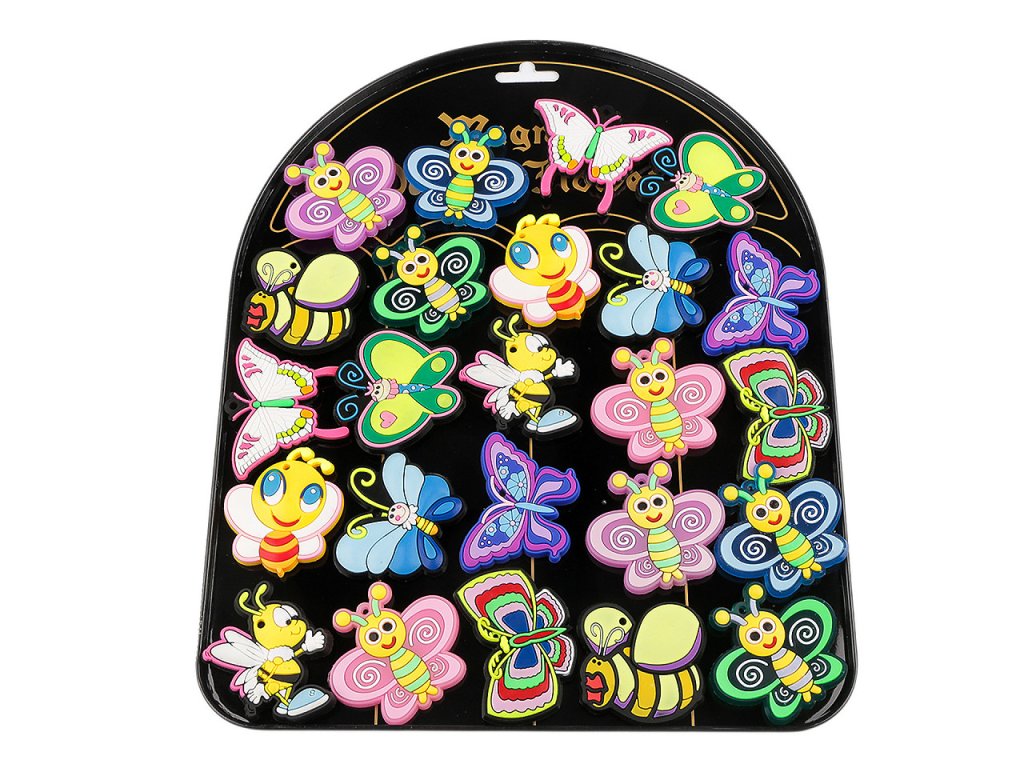 Silikonové magnetky s motýly jsou působivě barvené s precizně zpracovanými detaily. Lze je opakovaně upevnit na jakoukoliv kovovou plochu, např. na chladničku, nástěnku, mikrovlnnou troubu atd. Magnety drží na kovové podložce, která má otvor k zavěšení na prodejní stojan. Má rozměry 22 x 27,5 cm.- Rozměry: cca 4,5 x 4,5 cm