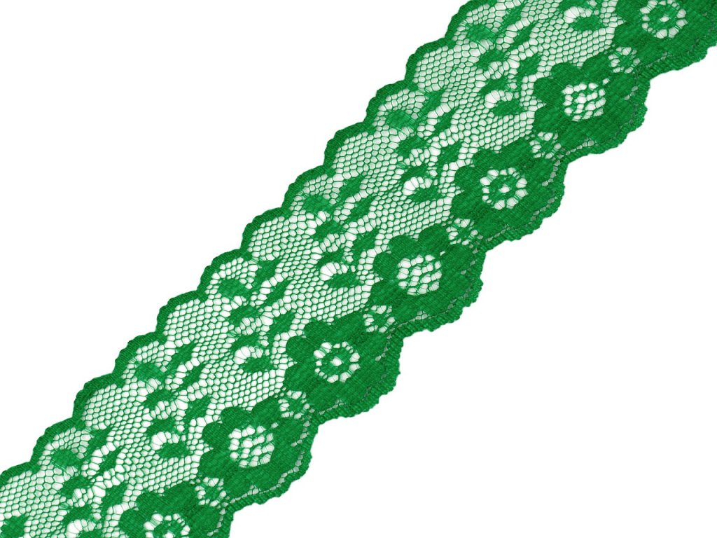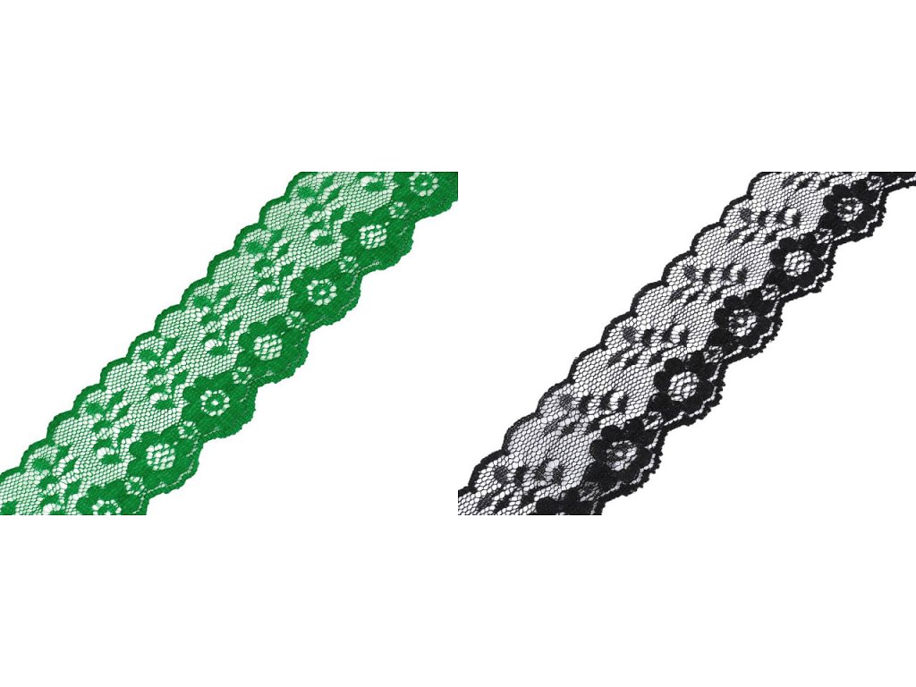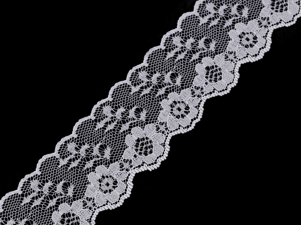 Silonová krajka působí jemně a její okraje zdobí motivy květů. Krajka je měkká a pevná, není pružná.