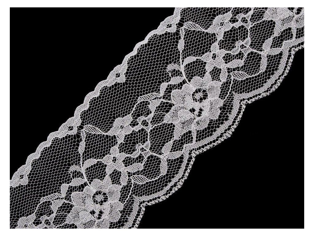 Silonovou krajku zdobí romantické motivy květů. Spodní strana je zakončena vlnkovaným okrajem. Použití: Krajkou můžete ozdobit šaty, halenky, sukně nebo spodní prádlo. Je vhodná také na oživení dekoračních polštářů, prostírání či ubrusů. Krajka může mít v návinu 4 až 5 prostřihů. Šíře krajky se po konečné úpravě může lišit o ±6%.- Šíře: 60 mm