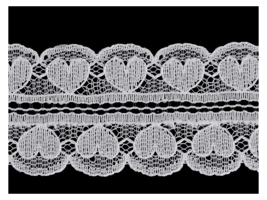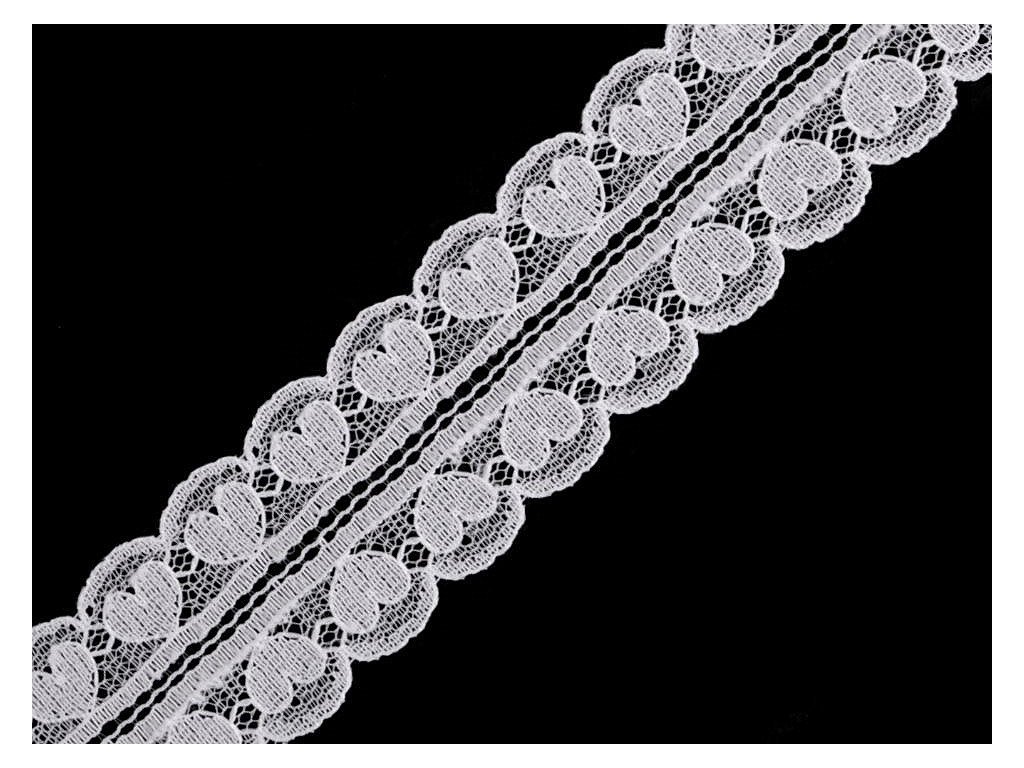 Krajka se srdíčky vynikne na halenkách, sukních, šatech i spodním prádle. Je vhodná také na svatební dekorace, u kterých podtrhne romantický nádech.- Šíře: 30 mm