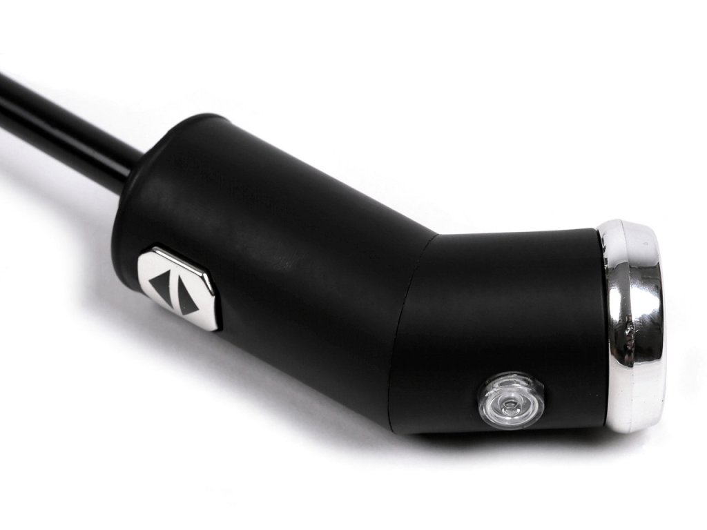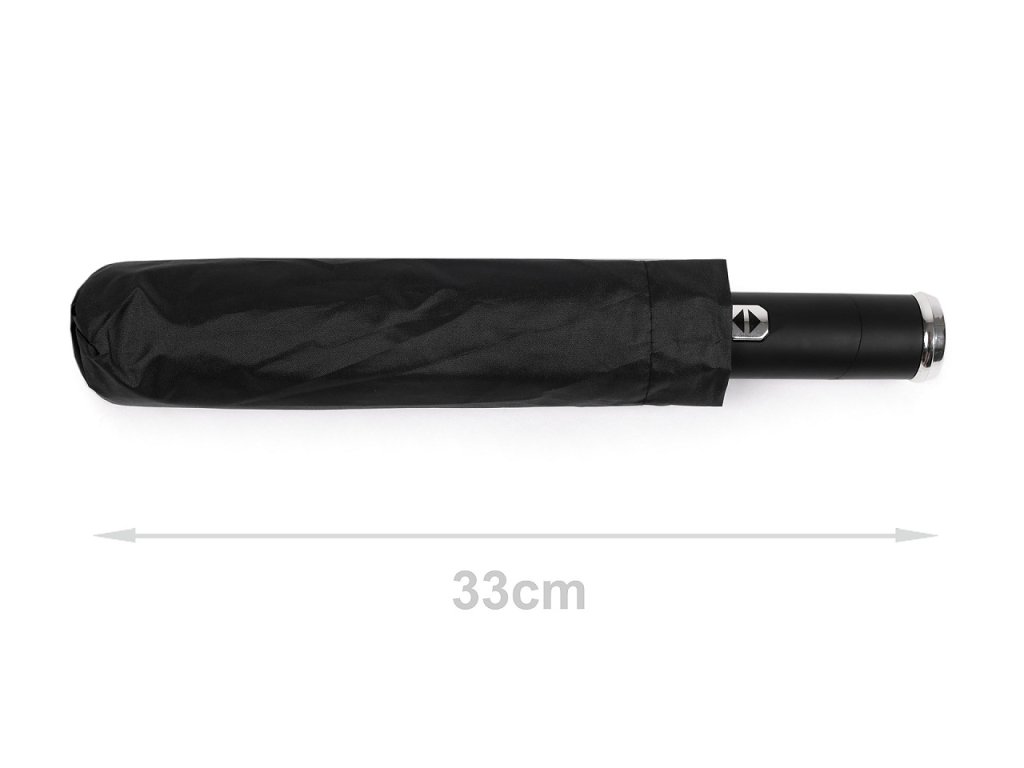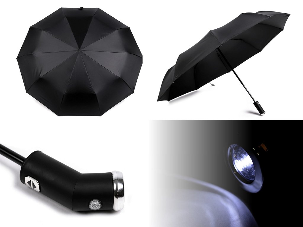 Plně automatický skládací deštník je vyrobený z kvalitního materiálu. Navíc má v rukojeti zabudovanou svítilnu. Jejím pootočením si můžete pohodlně svítit na cestu. Má vystřelovací/sestřelovací mechanizmus. Deštník se rozevře i zavře stisknutím tlačítka se šipkou nahoru nebo dolů. Je velice pevný, odolá náporům větru. Konstrukci tvoří deset polí. Součástí deštníku je ochranný obal. Hloubka deštníku je 20 cm. Celková délka je 65 cm. Délka složeného deštníku je 33 cm. V deštníku jsou 3 baterie LR44 (AG13).- Rukojeť: plastová