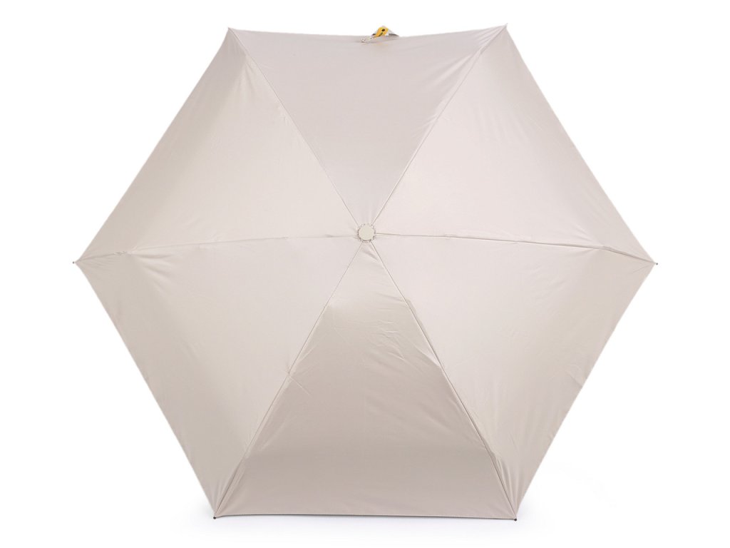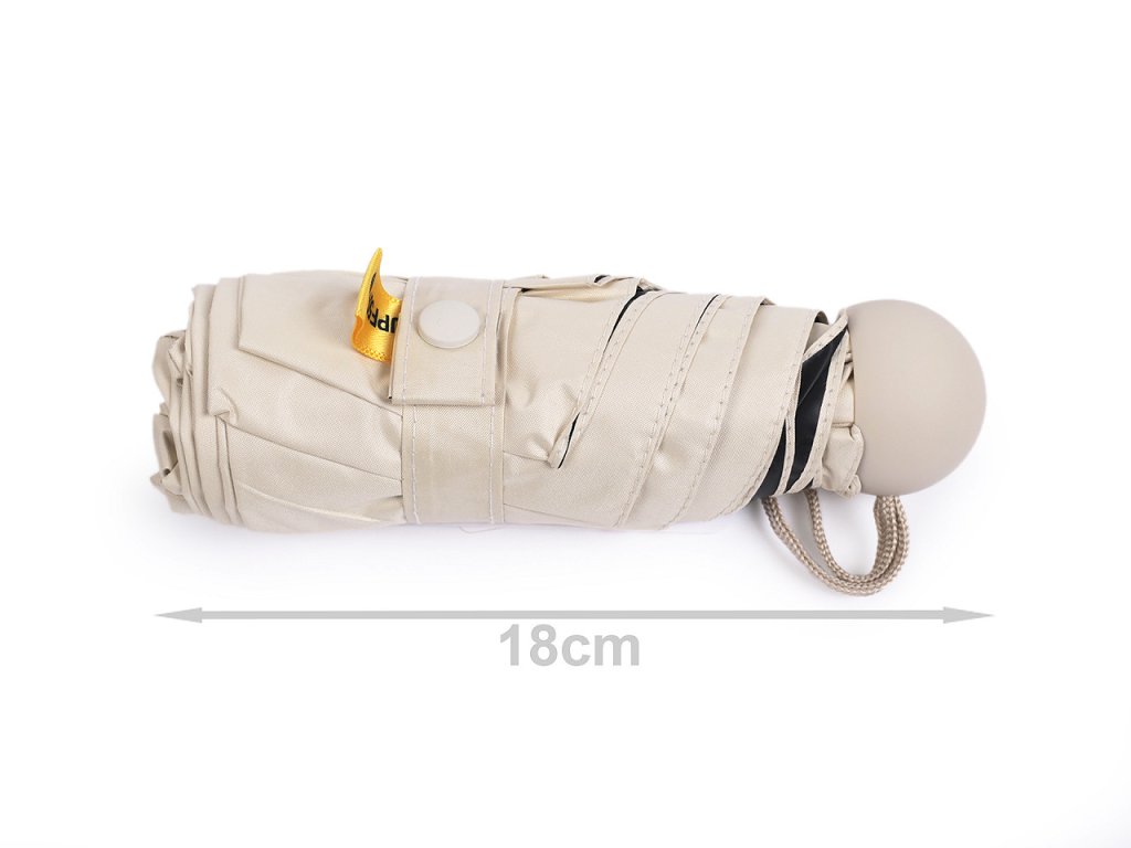 Skládací mini deštník je díky malé velikosti lehký a skladný, pohodlně se vám vejde do kabelky. Navíc má elegantní pouzdro na zip, do kterého deštník rychle zabalíte. Konstrukce je tvořena šesti poli. Rukojeť deštníku je plastová a opatřená poutkem. UV filtr vás ochrání před slunečním zářením. Zapínání je klasické na kovový patent. Součástí deštníku je pouzdro se zipem, ale i malý textilní obal a nepromokavý sáček. Hloubka deštníku je 18 cm. Celková délka je 53 cm. Délka složeného deštníku je 18 cm.- Rukojeť: plastová