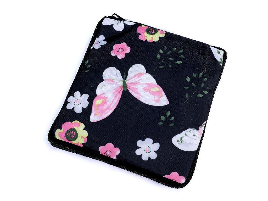 Skládací taška je praktickým doplňkem vaší kabelky. V případě většího nákupu ji jednoduše vytáhnete a rozložíte. Taška je kvalitní a pevná, uvnitř pogumovaná, díky materiálu i snadná na údržbu. Zapíná se na zip. Má dvě pevná ucha a široké dno. Na přední straně má dvě větší kapsy. Taška nemá obal, díky důmyslných zipů u dna se zapíná sama do sebe.- Rozměry (ŠxVxH): 38 x 44 x 15 cm