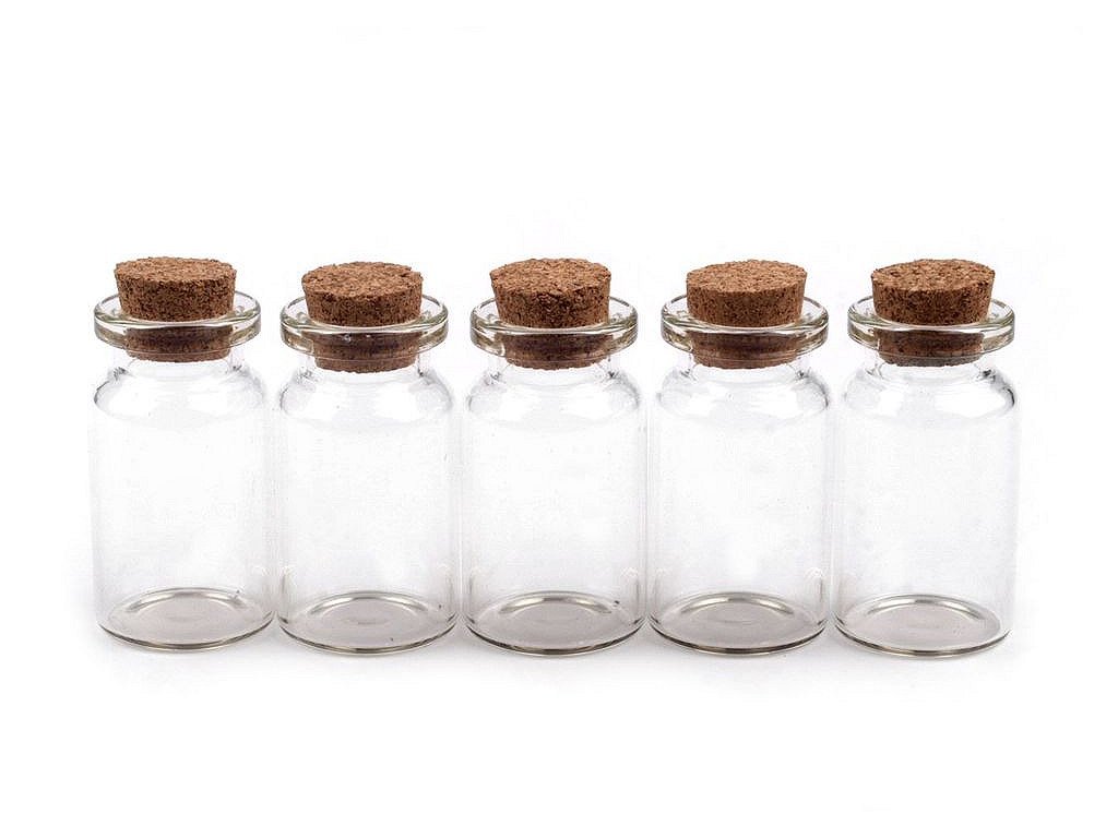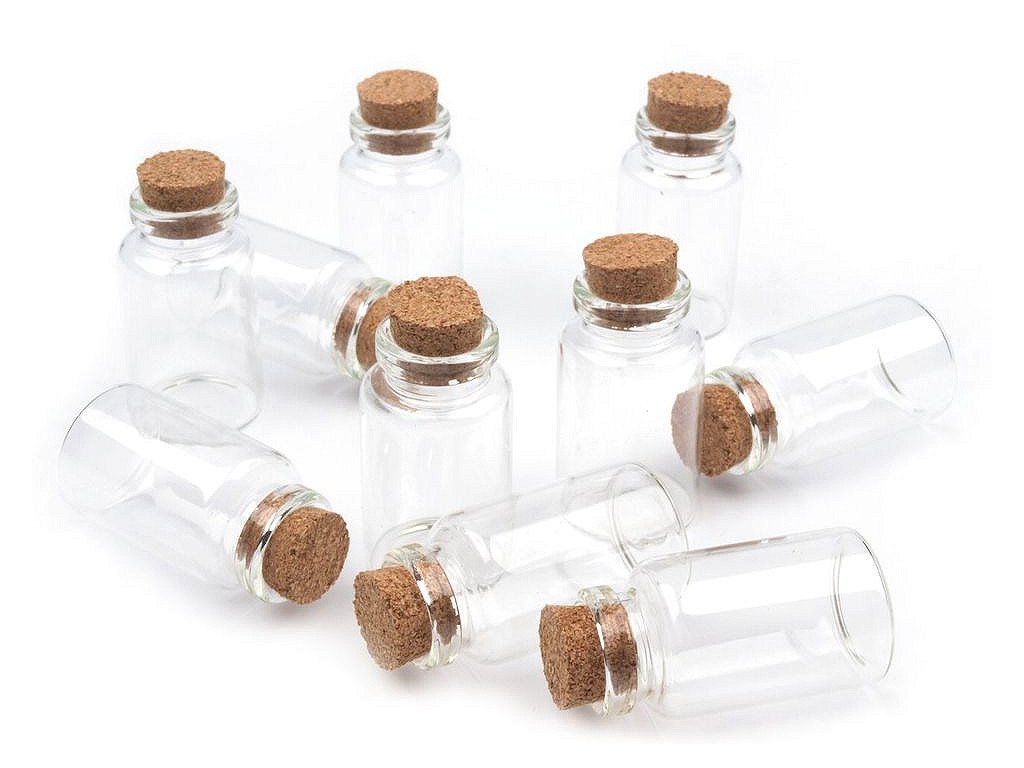 Velmi praktická skleněná lahvička vhodná na skladování drobných perliček jako je např. rocail. Díky průhlednosti dóziček jsou korálky v lahvičkách velmi přehledné. Korkový uzávěr pevně uzavře obsah dózy. Vybavte si svou tvořivou dílnu. Materiál pro nejrůznější výtvarné techniky bude více přehledný a ihned po ruce. Objem lahvičky je 8 ml. Vnitřní průměr otvoru lahvičky je 11 mm, vnější je 19 mm.- Průměr: 20 mm