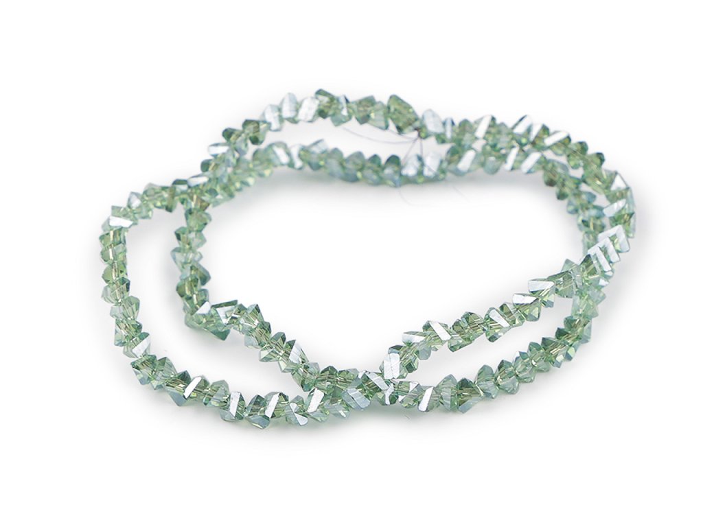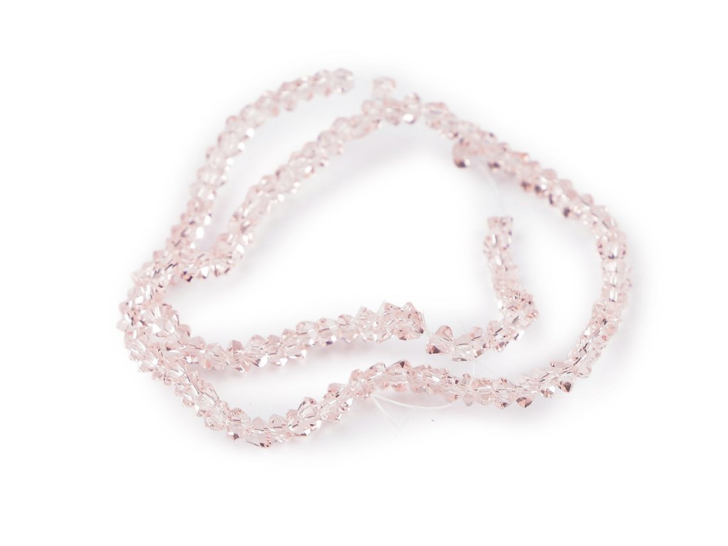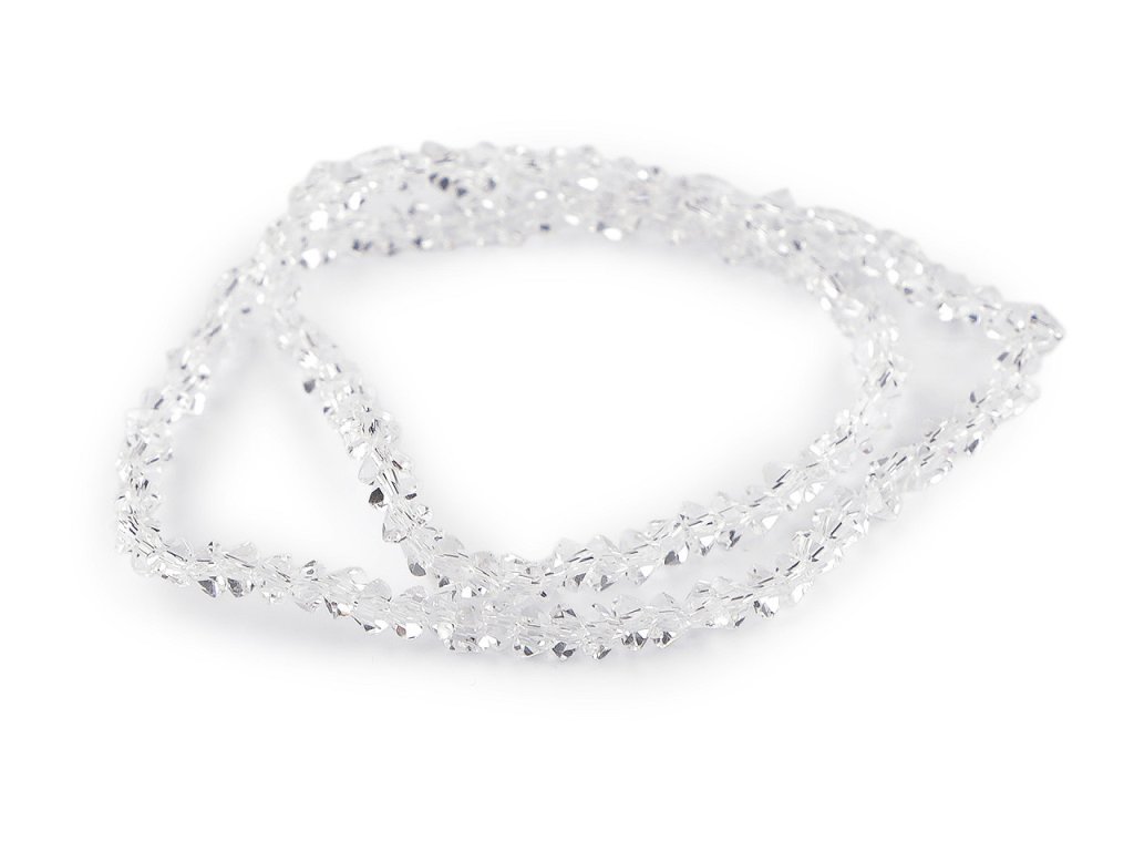 Skleněné broušené korálky triangl se vyznačují precizním broušením, které jim dodává jedinečný lesk a zajímavý tvar. Vynikají především svým třpytem. Jsou vhodné pro precizní práci při tvorbě šperků. Využijete je na ketlování, do šitých šperků, na drátování, paměťové náramky apod. Jsou také vhodné pro použití v různých hobby projektech, kde mohou posloužit jako detailní ozdoba. 1 sáček obsahuje cca 130 ks korálků navlečených na jemném drátku. Návlek je dlouhý cca 29 cm. Hmotnost sáčku i s korálky je 18 g.- Rozměry: 3 x 3 x 3 mm