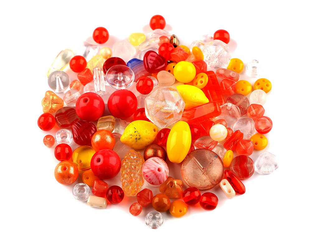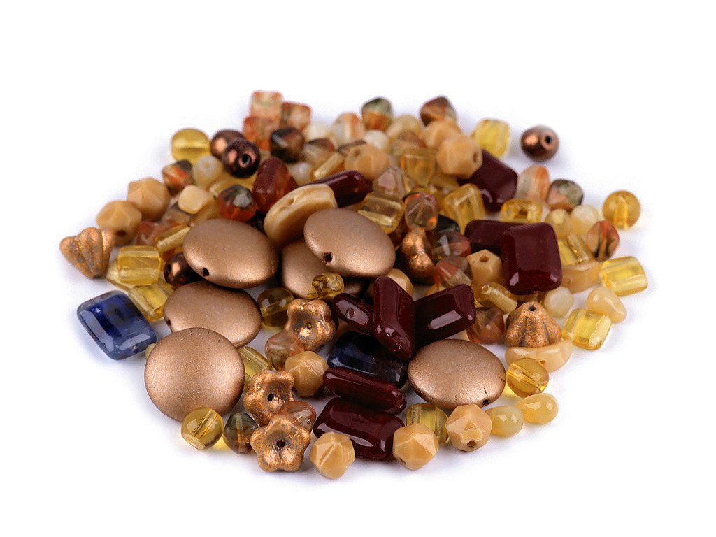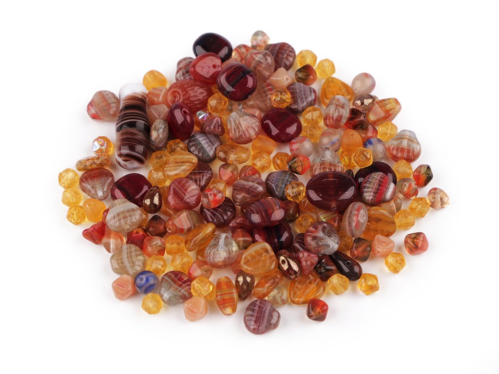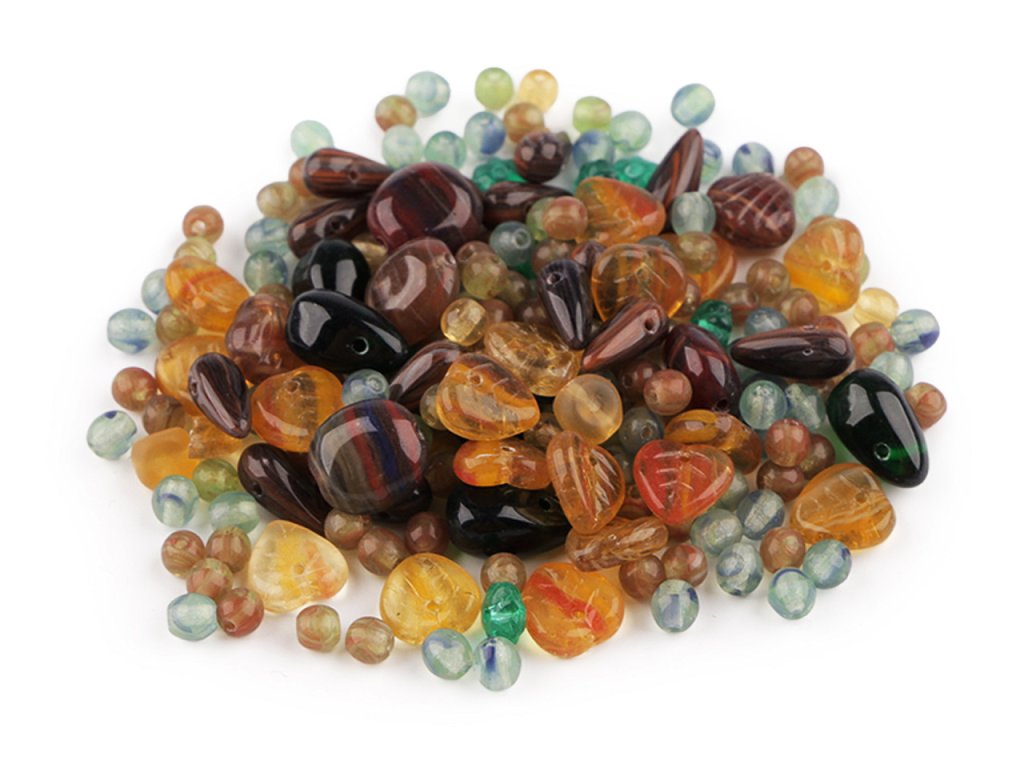 Ramš je směs různě tvarovaných mačkaných korálků v různých velikostech. Fotografie jsou ilustrační - v balení se mohou vyskytovat i jiné tvary a velikosti. Ramš je velmi oblíbený pro svoji pestrost. Korálky jsou vyrobeny ze skla. V balení najdete např. kuličky, ohňovky, lístečky, oválky, zvonečky, olivky, jazýčky, srdíčka a jiné druhy, v různých velikostech. Mixy můžete mezi sebou různě kombinovat, lze z nich vytvořit elegantní náhrdelník, náramek, náušnice, přívěsek na mobil či kabelku. Korálky lze také našívat na textil a kabelky. Množství korálků v jednotlivých baleních se může lišit, možnost tolerance +/- 2-3%. Ramš je ve 2. jakosti, protože se na některých korálcích mohou vyskytnout vrypy, bublinky, scházející dírky apod., viz foto.- Velikost: cca 3 - 20 mm