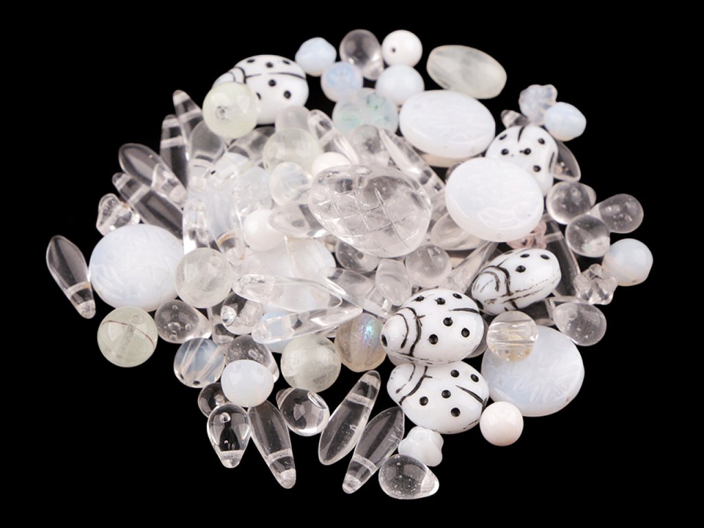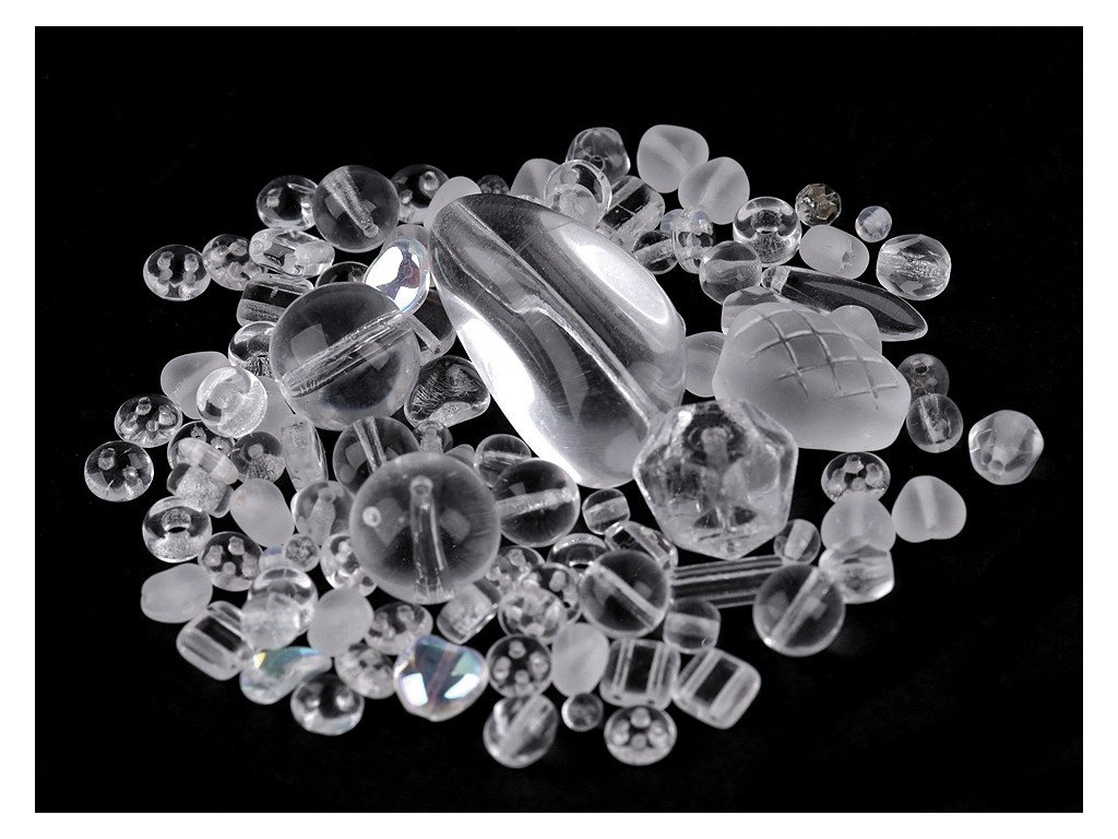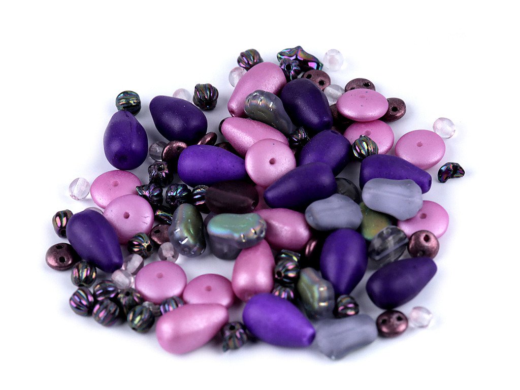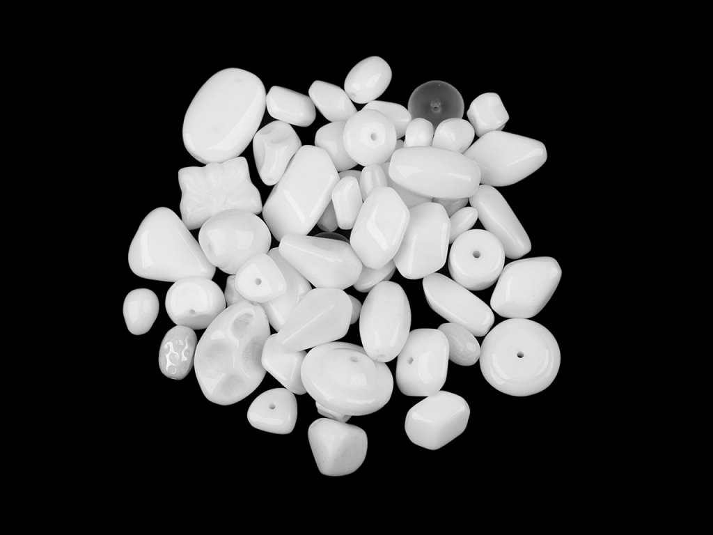 Ramš je směs různě tvarovaných mačkaných korálků v různých velikostech. Fotografie jsou ilustrační - v balení se mohou vyskytovat i jiné tvary a velikosti. Ramš je velmi oblíbený pro svoji pestrost. Korálky jsou vyrobeny ze skla. V balení najdete např. kuličky, ohňovky, lístečky, oválky, zvonečky, olivky, jazýčky, srdíčka a jiné druhy, v různých velikostech. Mixy můžete mezi sebou různě kombinovat, lze z nich vytvořit elegantní náhrdelník, náramek, náušnice, přívěsek na mobil či kabelku. Korálky lze také našívat na textil a kabelky. Množství korálků v jednotlivých baleních se může lišit, možnost tolerance +/- 2-3%. Ramš je ve 2. jakosti, protože se na některých korálcích mohou vyskytnout vrypy, bublinky, scházející dírky apod., viz foto.- Velikost: cca 3 - 20 mm
