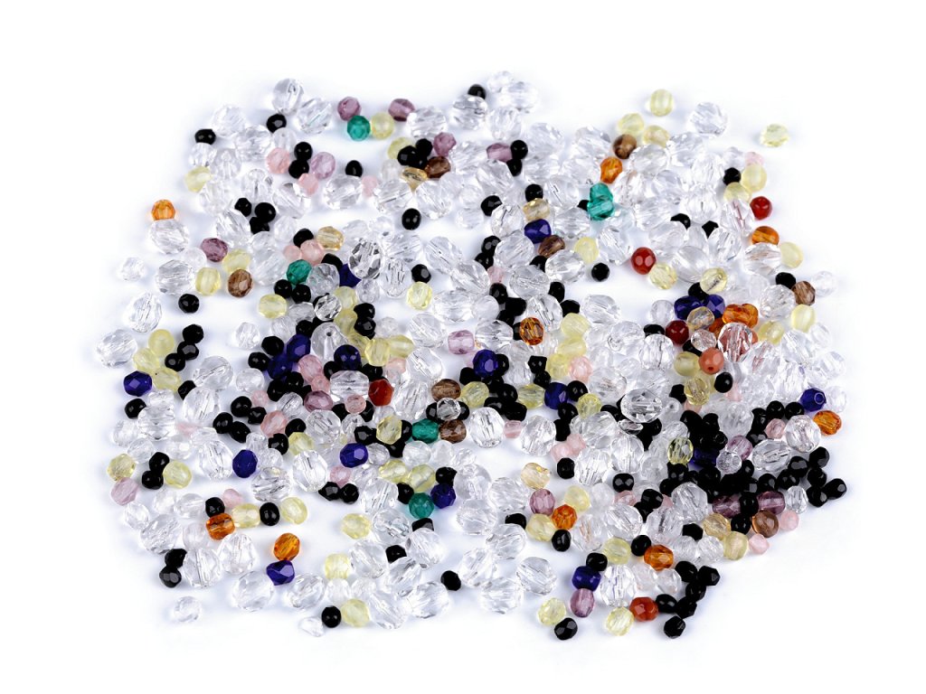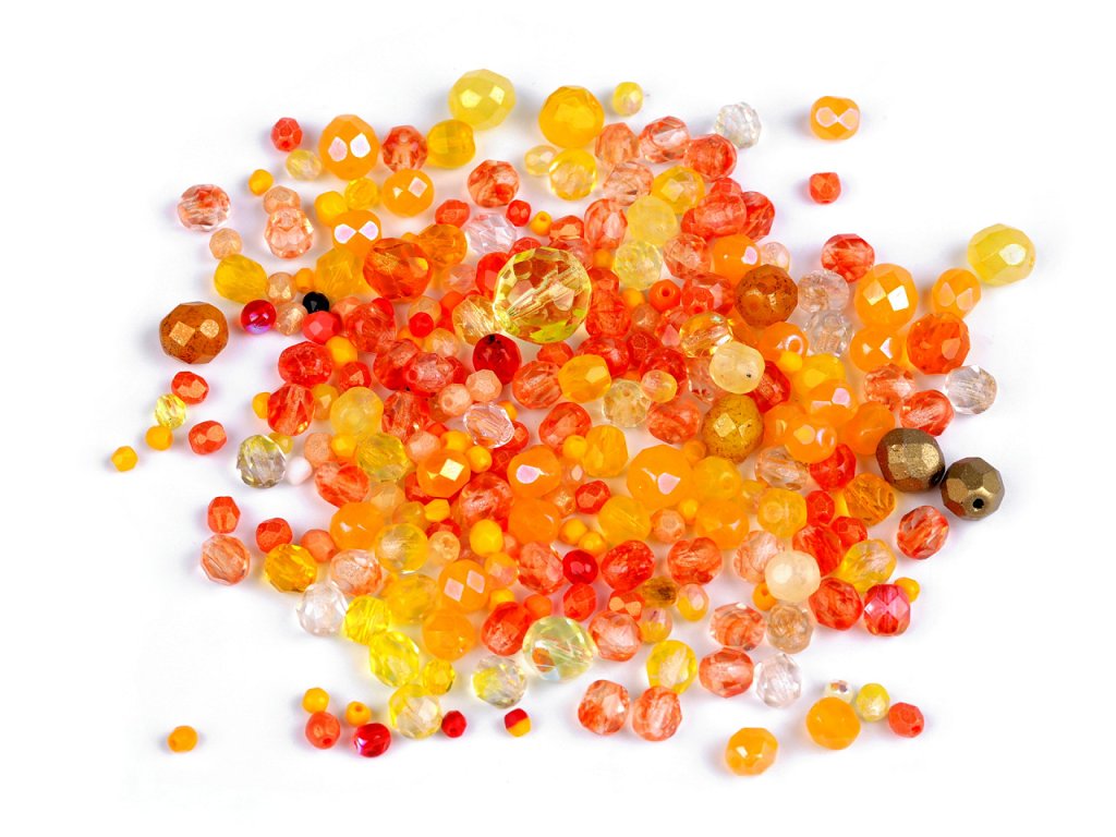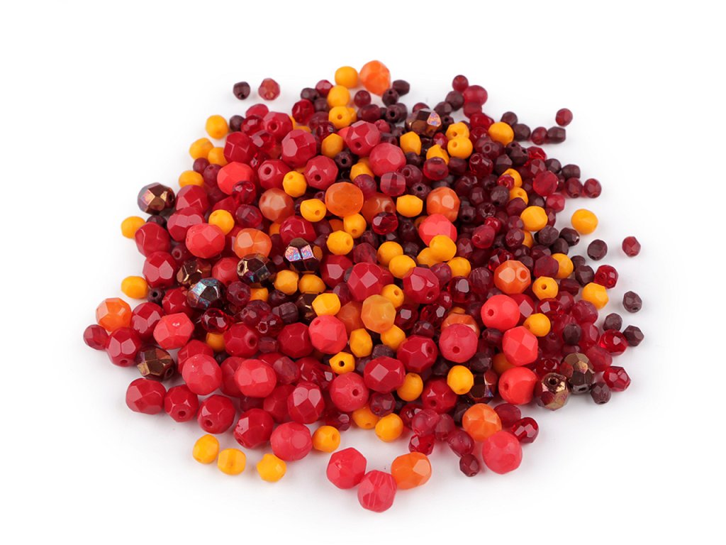 Ramš z broušených ohňovek, které vynikají především svým třpytem, je směsí broušených skleněných korálků různých velikostí. České ohňové perle jsou populárním druhem skleněných perlí, který vznikl již před 5 stoletími. Vzhledově se přiblížují broušeným drahým kamenům a zároveň zachovávají možnost navlékání. Fotografie jsou ilustrační, v balení se mohou vyskytovat i jiné velikosti. Ramš je ve 2. jakosti, protože se na některých korálcích mohou vyskytnout vrypy, bublinky, scházející dírky apod., viz foto.Doplňkové parametry