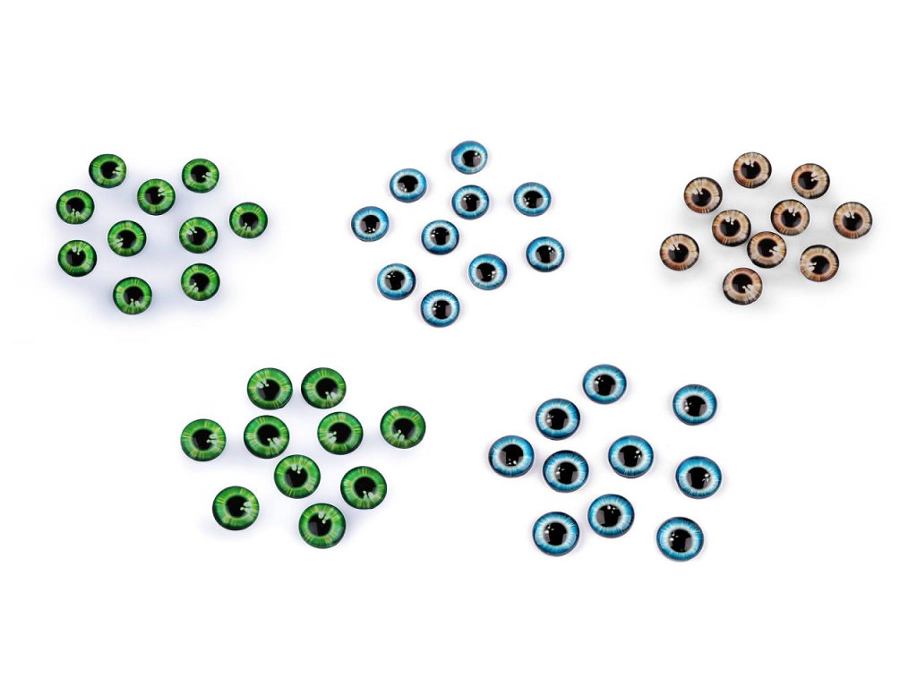 Kulaté skleněné oči mají realistické zpracování panenky. Díky tvaru vypouklé čočky obrázek oka krásně vynikne. Využijete je na tvorbu různých postaviček a zvířátek. Pro jejich přilepení je vhodné použít lepidlo na lepení kamínků. S oblibou se používají i na výrobu bižuterie, jako kabošony jsou vhodné k nalepení do kovového lůžka nebo k obšití korálky a rokajlem. Velice působivé jsou v drátovaných špercích.- Průměr: č. 1 - 3: 10 mm