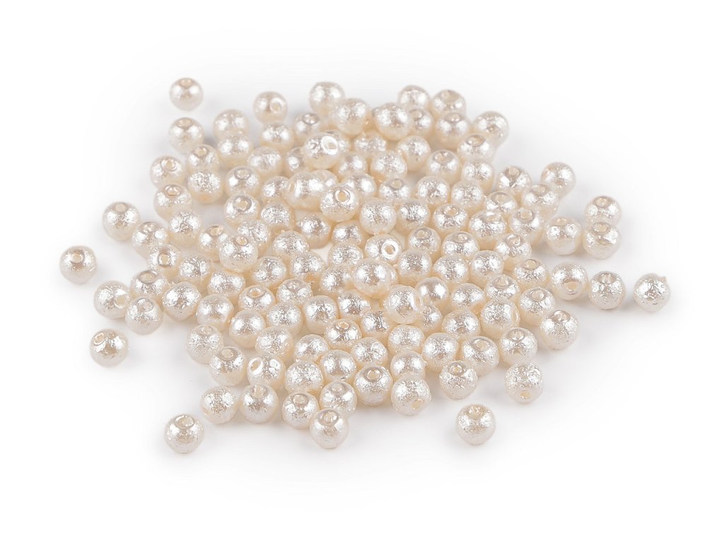 Voskované perly s vroubkovanou povrchovou úpravou jsou vhodné jak k dekoracím, tak i k výrobě bižuterie a korálkování. K navlečení můžete z naší nabídky použít např. silonový vlasec, další variantou může být nylonové lanko, paměťový drátek nebo třeba silikonová pruženka. V balení 20 g je cca 190 ks korálků.- Průměr: 4 mm