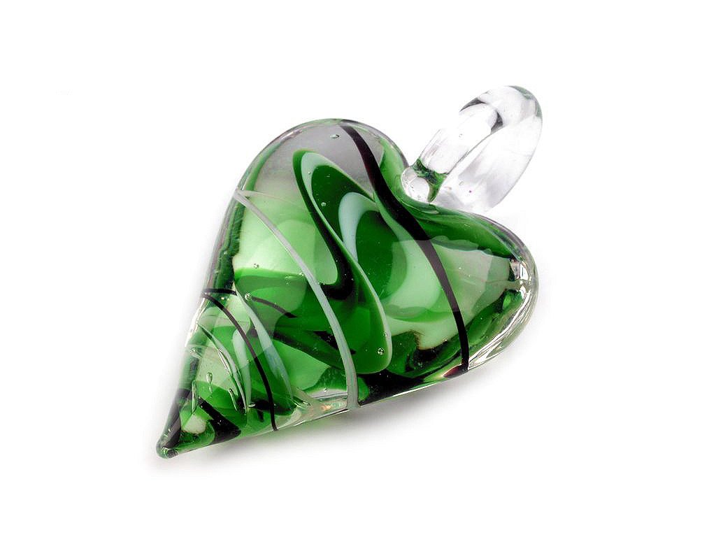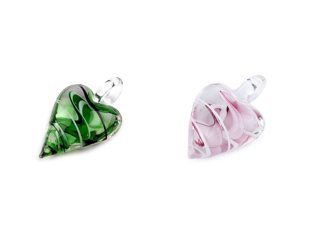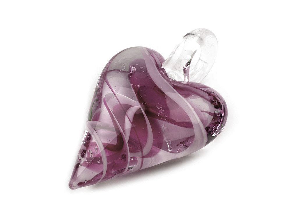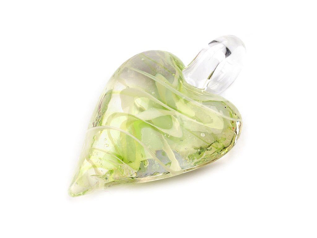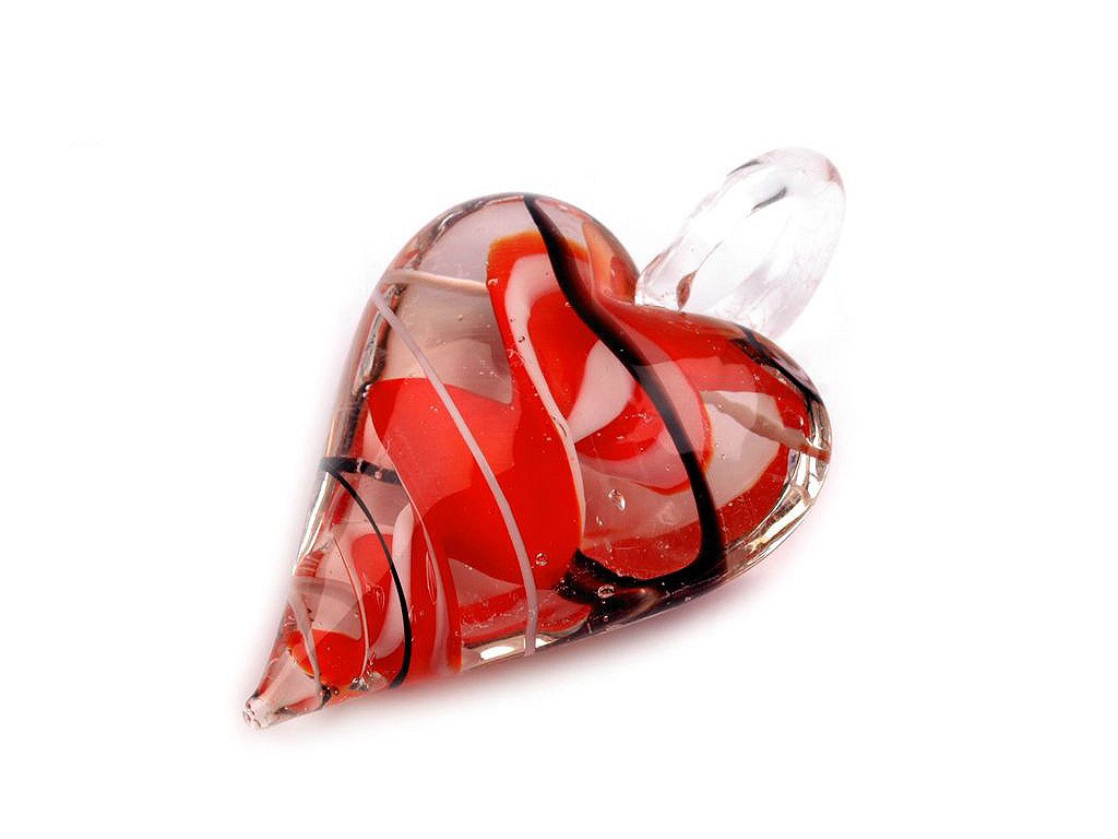 Designově originální přívěsky ve tvaru srdce. Každý kus je originál. Přívěsky jsou vyrobené ze skla, ve svých středech mají neopakovatelné vzory a probarvení. Na krk si je můžete pověsit na řetízek nebo kůži díky velkému praktickému oušku. U tohoto druhu zboží dochází díky technologii výroby k drobným tvarovým odchylkám. Rozměry se mohou pohybovat od 15x30x45mm do 16x32x47mm. Barvy přívěsků v mixu barev se mohou lišit, fotografie je pouze ilustrační.- Rozměry přívěsku: cca 3 x 4,5 cm
