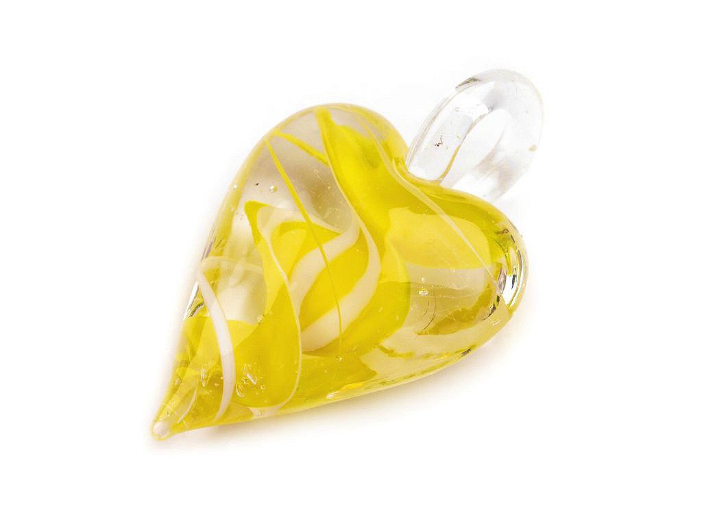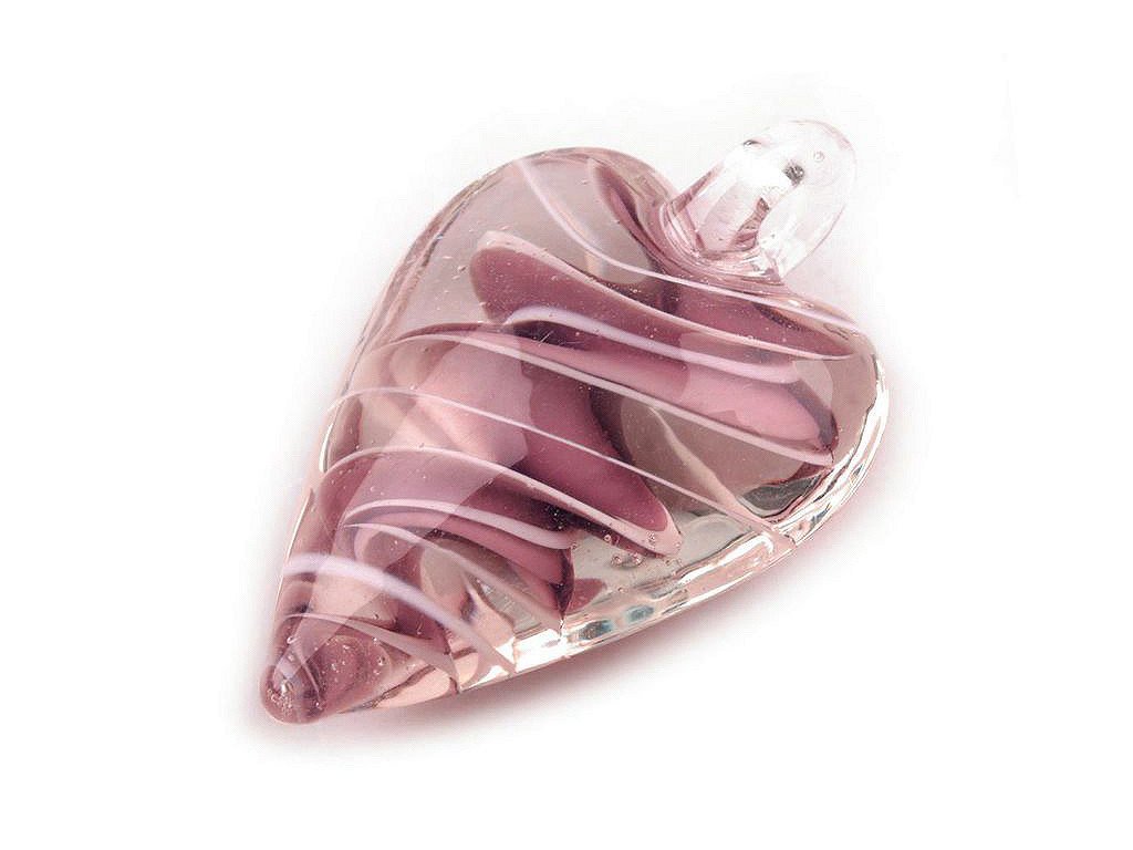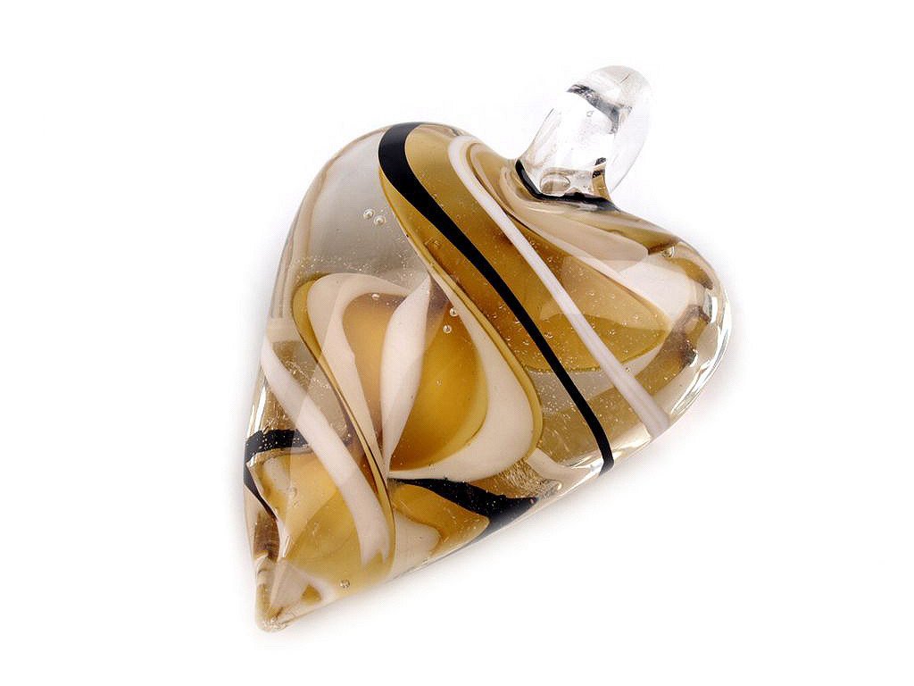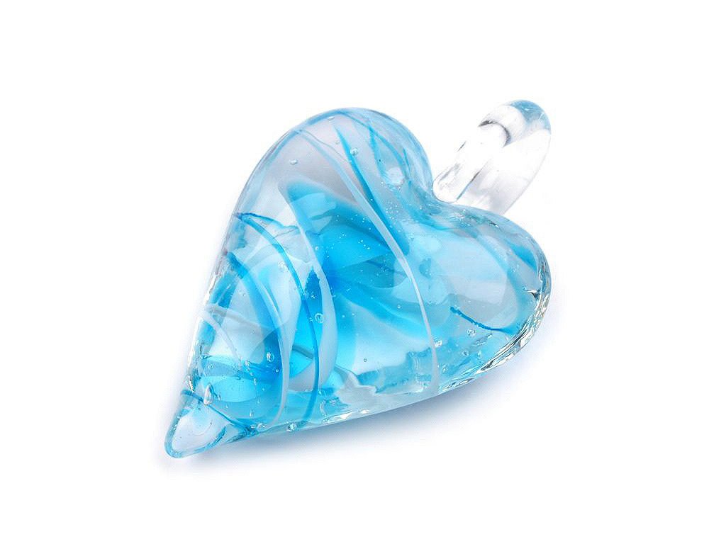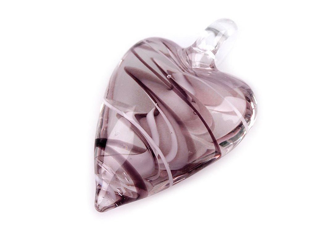 Designově originální přívěsky ve tvaru srdce. Každý kus je originál. Přívěsky jsou vyrobené ze skla, ve svých středech mají neopakovatelné vzory a probarvení. Na krk si je můžete pověsit na řetízek nebo kůži díky velkému praktickému oušku. U tohoto druhu zboží dochází díky technologii výroby k drobným tvarovým odchylkám. Rozměry se mohou pohybovat od 15x30x45mm do 16x32x47mm. Barvy přívěsků v mixu barev se mohou lišit, fotografie je pouze ilustrační.- Rozměry přívěsku: cca 3 x 4,5 cm