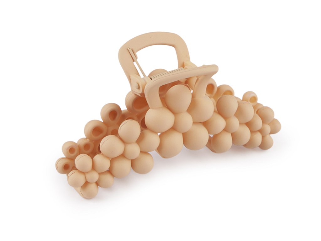 Skřipec do vlasů s designem bublinkových květů vytvoří zajímavý účes během chvilky. Ocení jej i ženy, které nemají rády gumičky. Drží přesně na místě díky svému silnému stisku a zoubkům. Má matný povrch.