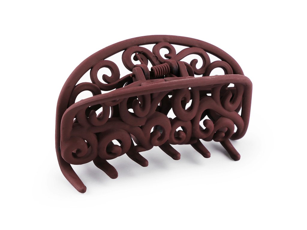 Skřipec do vlasů s ornamenty je ideální pro ženy, které nemají rády gumičky. Vytvoří zajímavý účes během chvilky. Drží přesně na místě díky svému silnému stisku a zoubkům. Má matný povrch.
