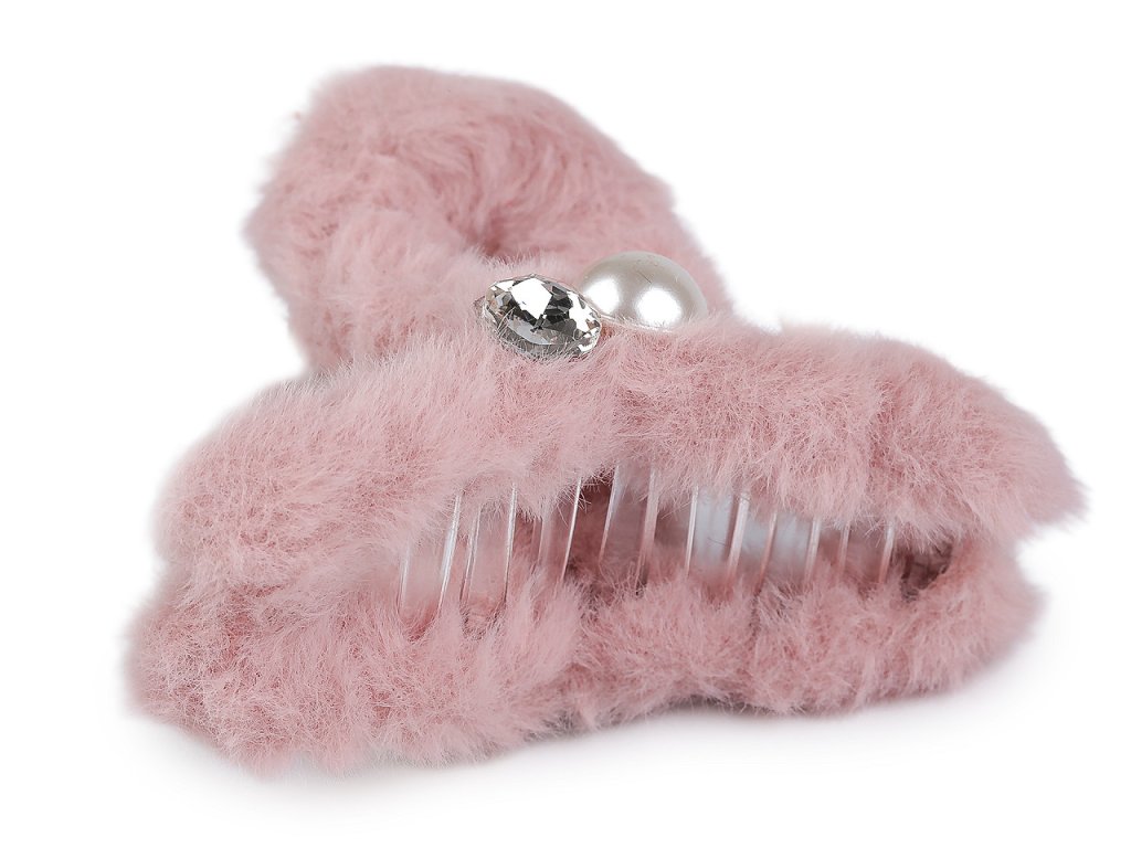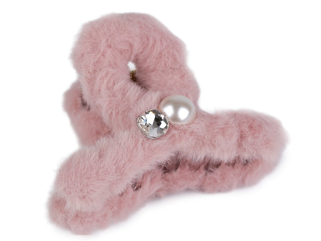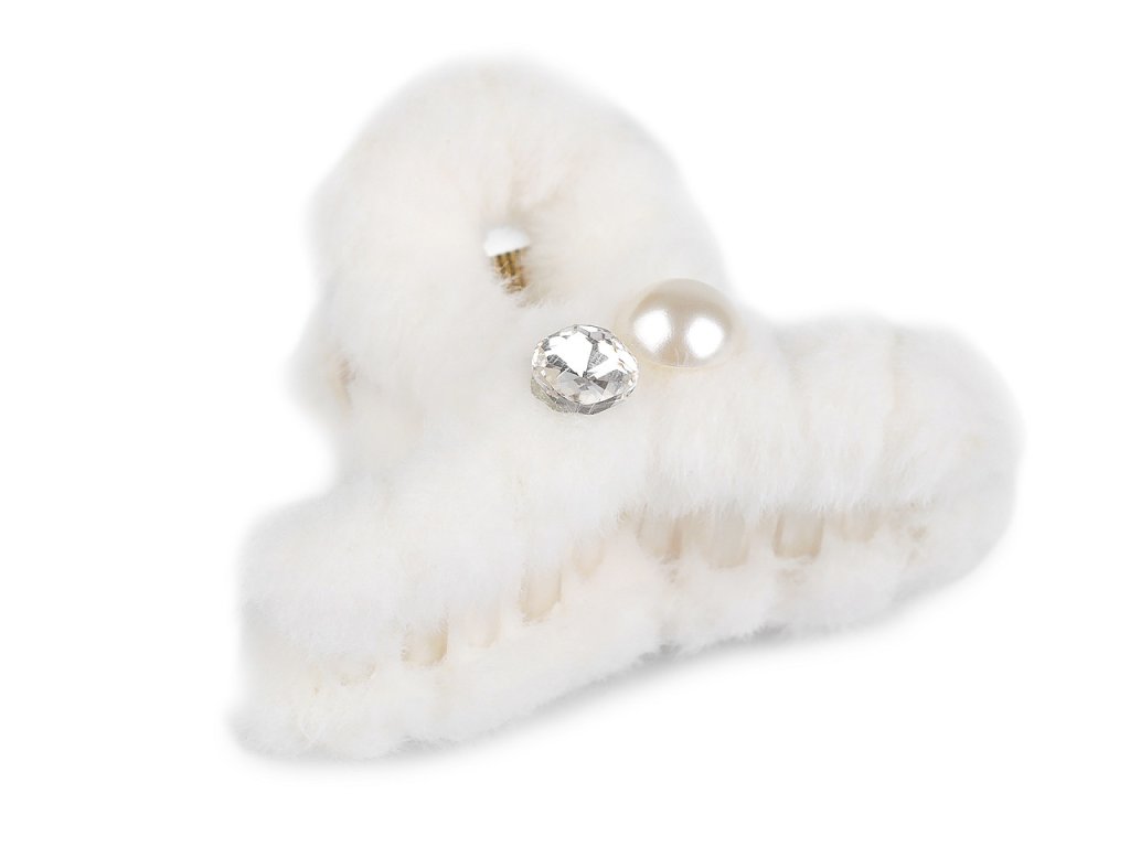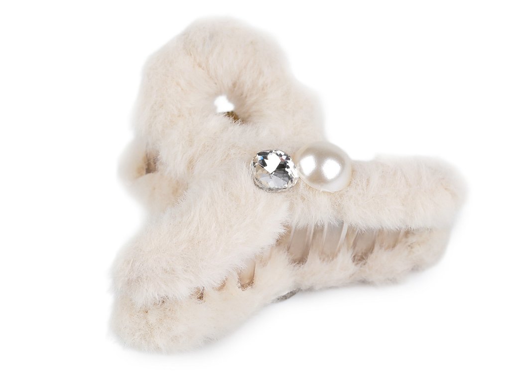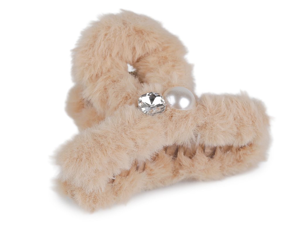 Skřipec do vlasů kožešinový s perlou a broušeným kamenem