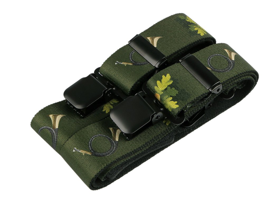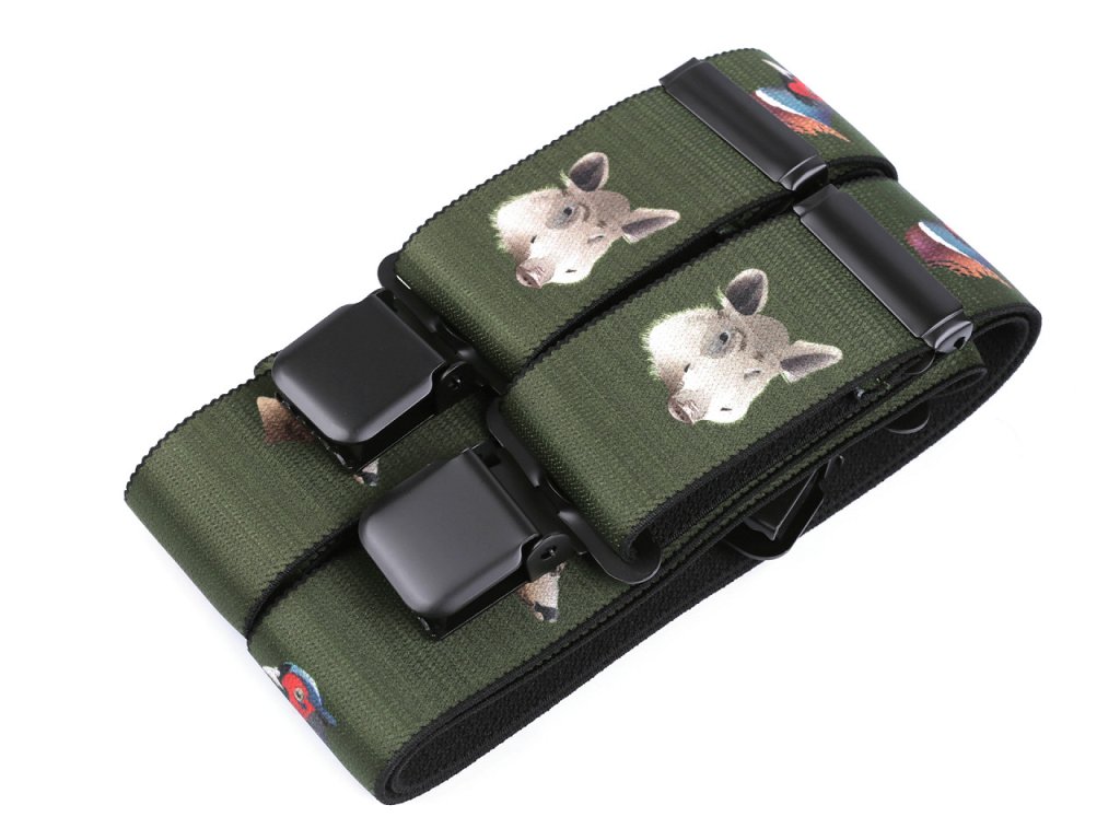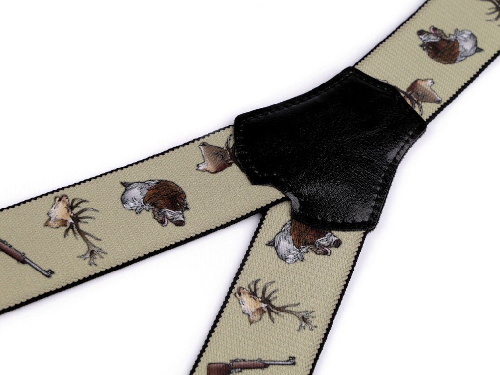 Kšandy s potiskem lesní zvěře potěší všechny myslivce. Kšandy bývají nedílnou a zároveň praktickou součástí jejich oblečení. Jsou kvalitní české výroby, elastický materiál umožňuje pohodlné nošení. Zadní vsadka z eko kůže jim dodává stylový vzhled. Ke kalhotám se upevňují na tři žabky - dvě vpředu a jednu vzadu.- Šířka: 4 cm