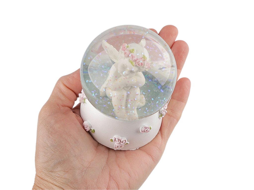Sněžítko s andělem můžete využít nejen jako dekoraci, ale také jako těžítko, které zkrášlí váš stůl. Zatřepte s ním a nechte se unášet jemným třpytivým sněžením.