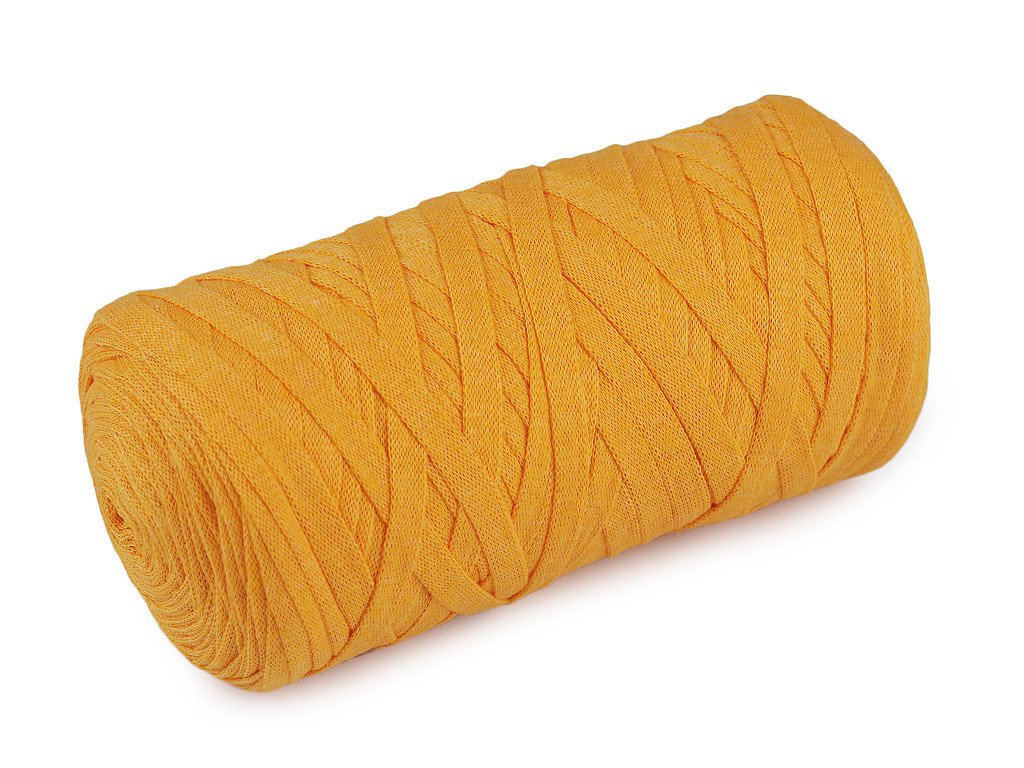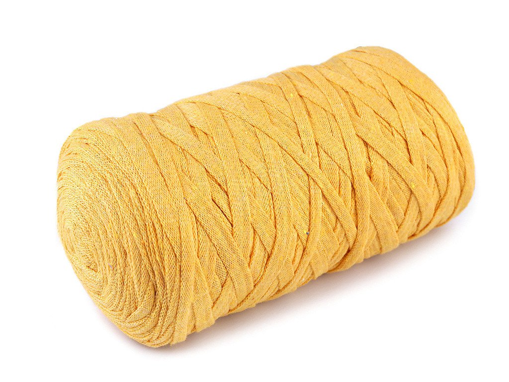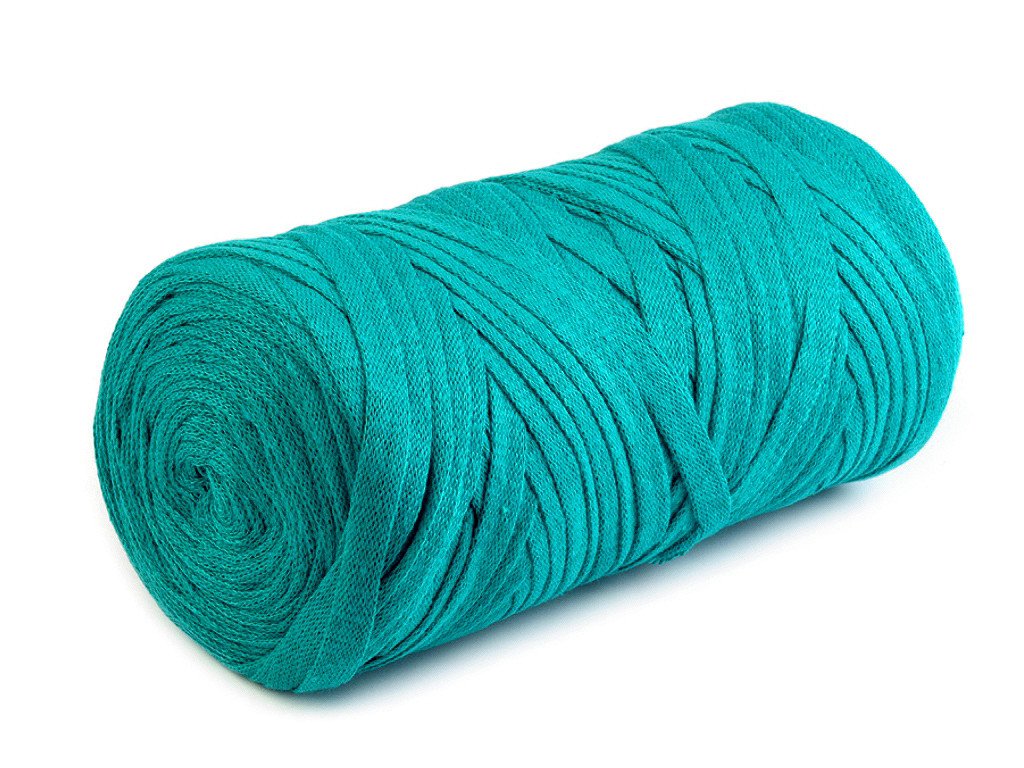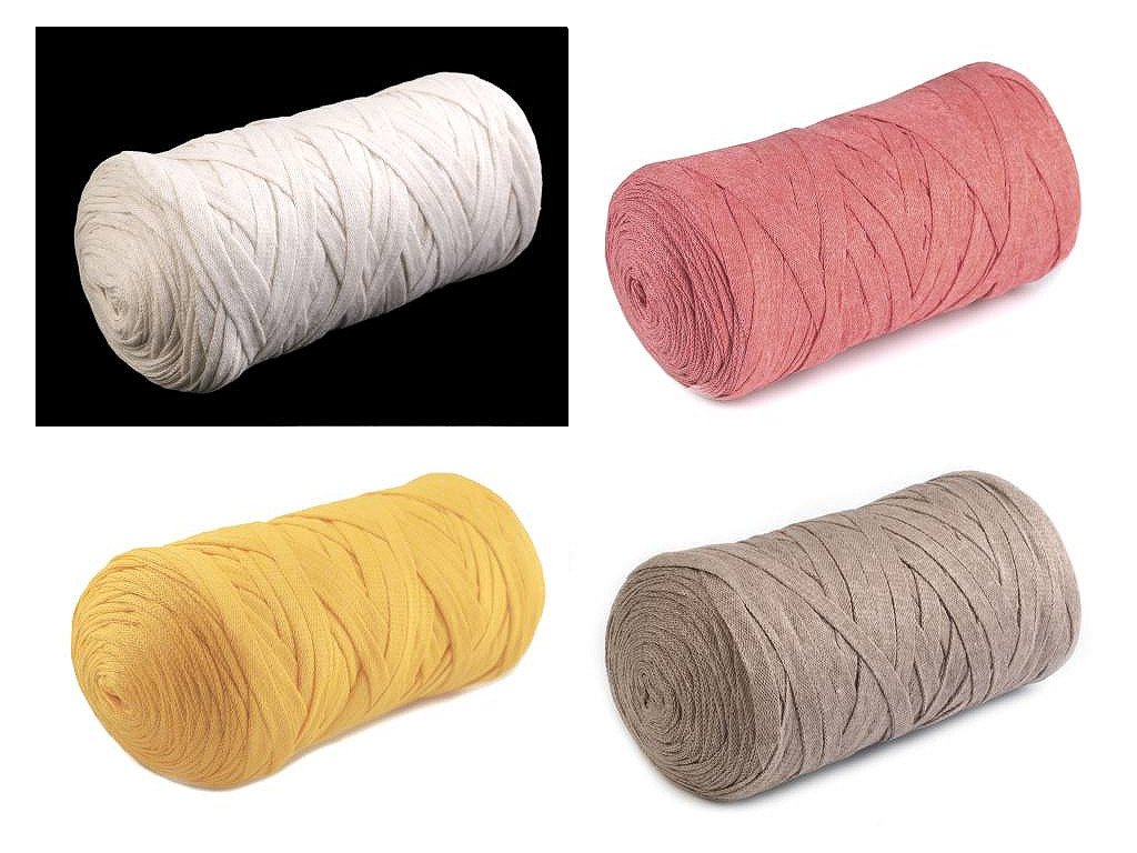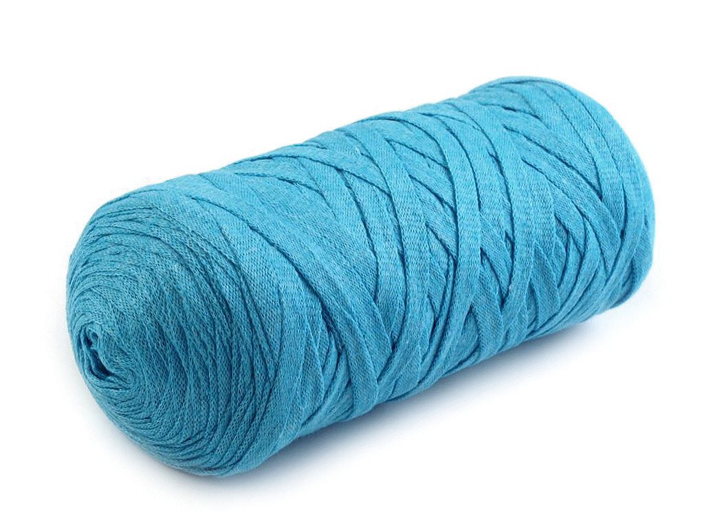 Špagetová příze je plochá, bez výplně (dutinka). Využijete ji na pletení a háčkování výrobků větších rozměrů, například koberečků, dek, tašek, šál, košíků, povlaků na polštáře, sedacích pufů apod. Je příjemná na dotek. Mohou s ní pracovat i děti, které si tak procvičí jemnou motoriku. Špagetovou přízi využijete i na výrobu náhrdelníků a náramků. Můžete ji různě splétat nebo nechat volně v několika pramenech, dá se dozdobit korálky s velkým průvlekem nebo přívěsky viz inspirační foto. Velikost jehlic: 10 Velikost háčku: 10 Údaje o spotřebě příze najdete na poslední fotografii. Povlak na polštář (38 x 40 cm) a modrá taška (37 x 39 cm), kterou vidíte na inspiračních fotografiích, jsou vyrobeny ze 2 klubek špaget. Odstíny se mohou lehce lišit z důvodu různých výrobních šarží.- Šíře: cca 8 mm