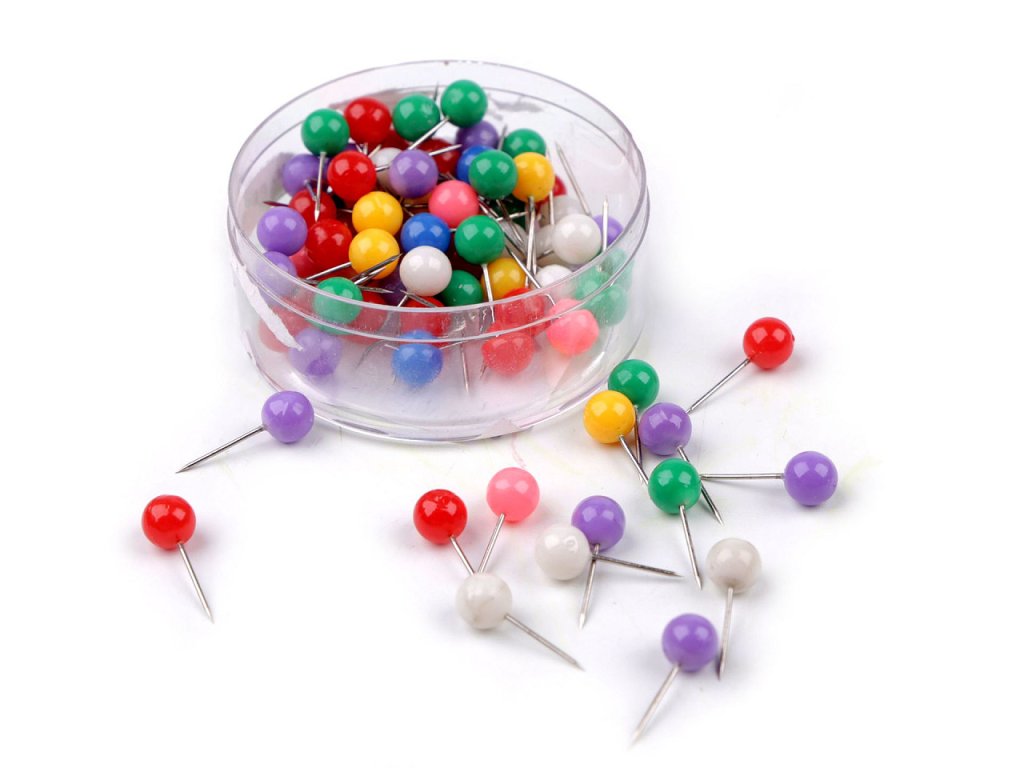 Krátké špendlíky s barevnou plastovou hlavičkou najdou uplatnění nejen v domácnosti a kanceláři, ale i v květinářství při aranžování živých květů a různých ikeban.- Délka: 17 mm