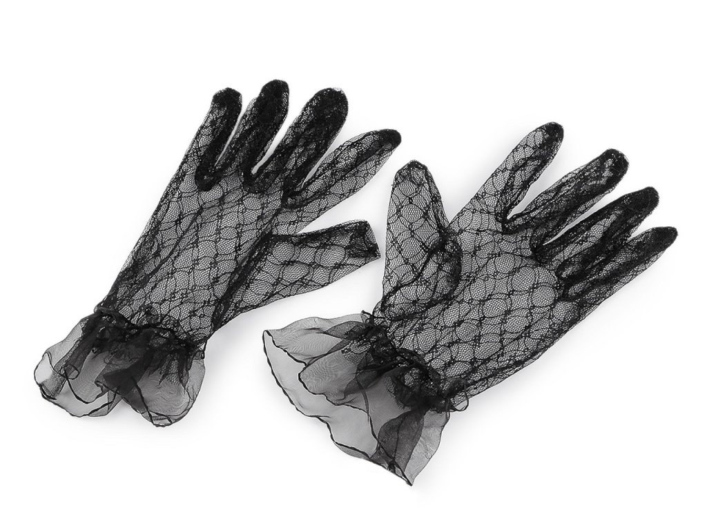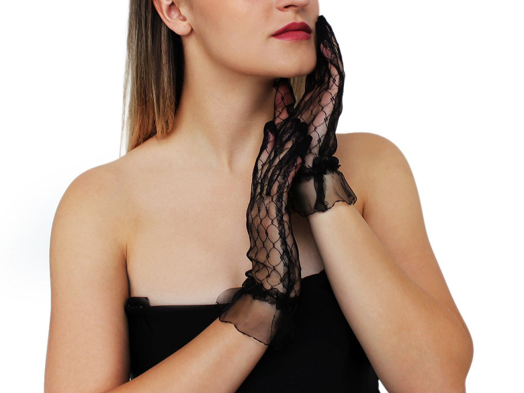Elegantní krajkové rukavice představují dokonalý doplněk pro každou slavnostní příležitost. Výborně se přizpůsobí své majitelce, zápěstí mají ozdobené volánkem. Díky všité pružence perfektně drží - nesklouzávají. Krátké rukavičky nevyžadují nutně velkou večerní róbu jako jejich dlouhá varianta. Využijete je i při letních večerních party, na čajové dýchánky apod. Jsou ideální na taneční večery. Skvěle doplní večerní šaty nebo koktejlové outfity.- Délka: 23 cm