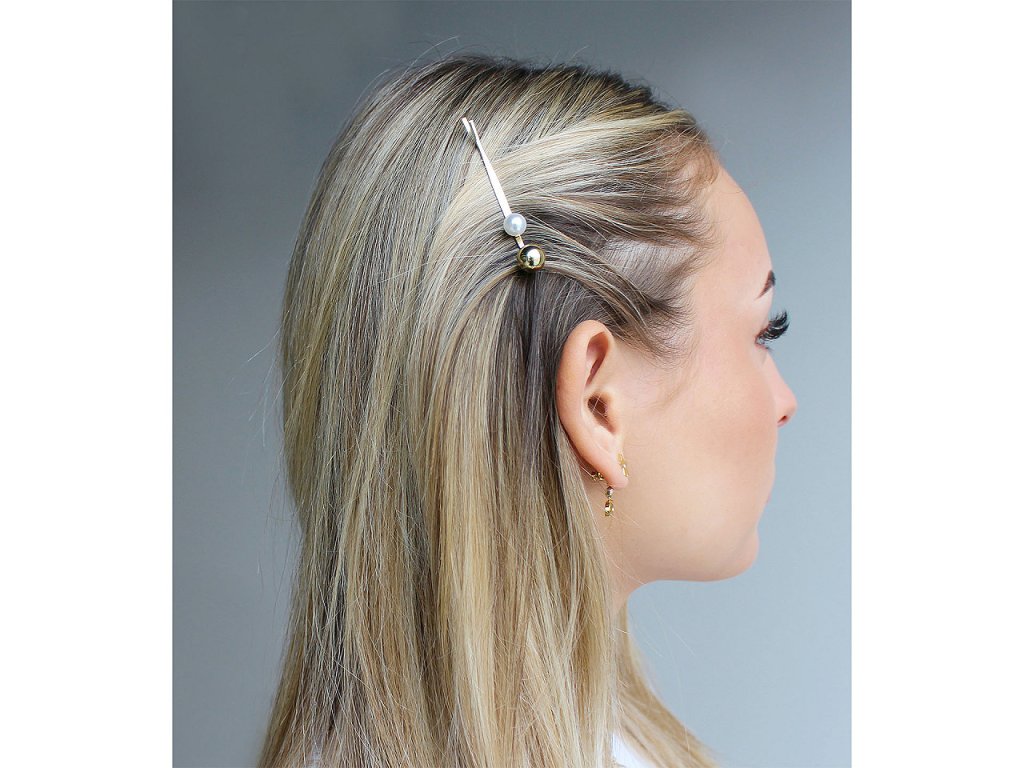 Elegantní sponky do vlasů zdobí lesklé kuličky a perly. Zaujmou svým minimalistickým a vkusným designem. Jsou vyrobené z kvalitního bižuterního kovu, ve vlasech skvěle drží. Využijete je na různé společenské akce, ale také na běžné nošení, decentně ozdobí váš účes. Průměr kuličky je 10 mm, průměr perly je 8 mm. Na jedné kartě jsou 2 sponky. Karta je vhodná k zavěšení na prodejní stojan.- Šířka: 2,8 mm
