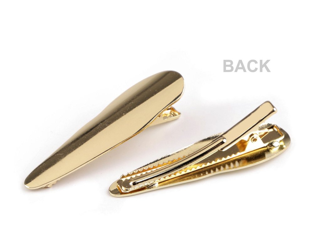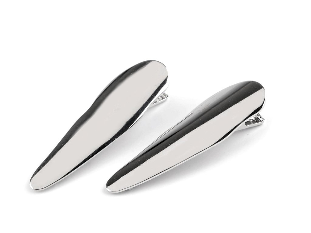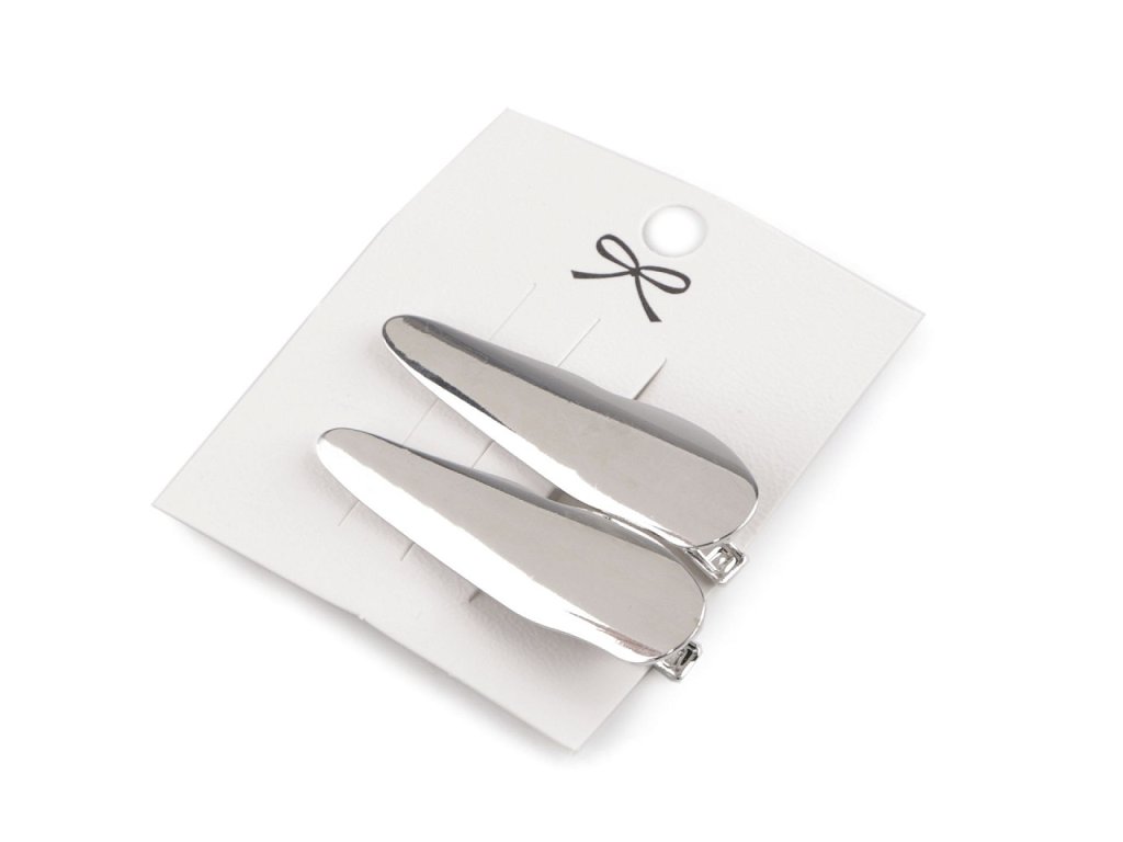 Kovové sponky do vlasů jsou elegantním doplňkem pro každodenní úpravu vlasů. Jsou vyrobené z kvalitního materiálu, který zajišťuje jejich odolnost a dlouhou životnost. Díky zoubkované vnitřní části pevně drží na místě. Jejich povrch je hladký, se zrcadlovým leskem. Jejich univerzální design se hodí jak pro formální, tak i neformální příležitosti.- Šířka: 1,7 cm
