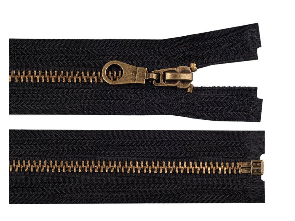 Staromosazný zip je velmi pevný a vyrobený z kvalitního mosazného materiálu, který při styku s vodou nereziví. Zipy jsou určené pro těžší textilní výrobky, hlavně pro bundy, kabáty, jeans programy, kabelky, apod.- Šířka zipu: 3,3 cm