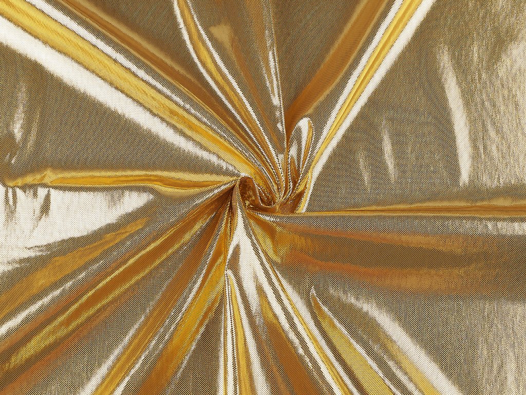 Metalický úplet se pyšní vysokým leskem. Skvěle se hodí na šití divadelních a karnevalových kostýmů, splývavých šatů, sukní apod. Úplet pruží diagonálně a po šíři. Je splývavý.- Gramáž: 97 - 100 g/m²