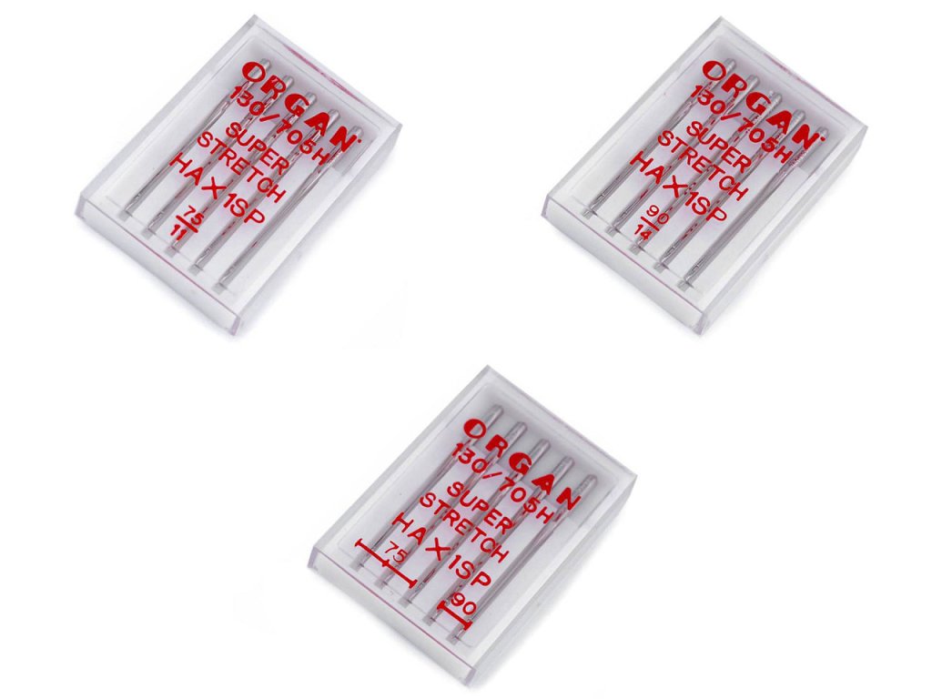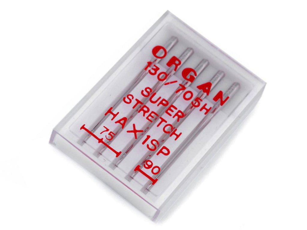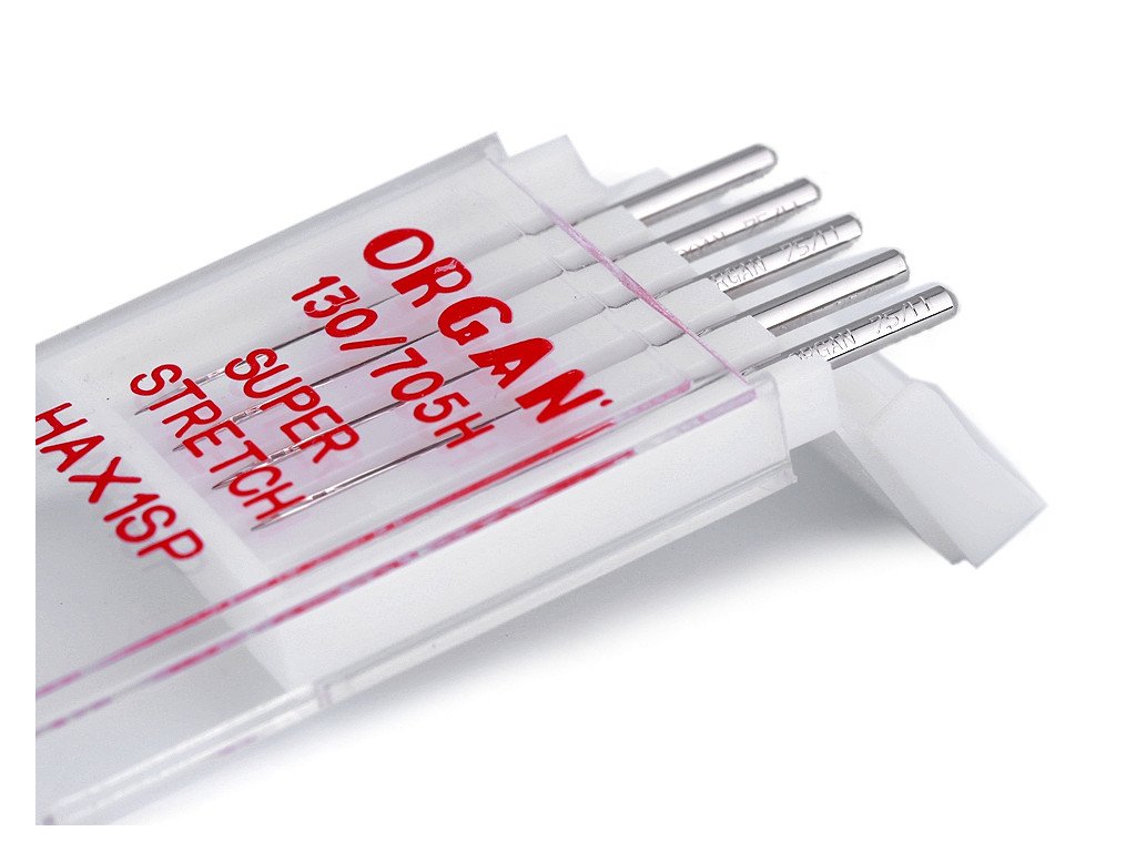 Jehly Super Stretch jsou vhodné pro šití extra pružných materiálů. Mají z jedné strany plošku. Jehly Organ jsou určeny pro většinu domácích šicích strojů. Vyrobeno v Japonsku.- Velikost: 75/11; 90/14; 75; 90