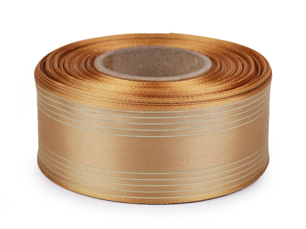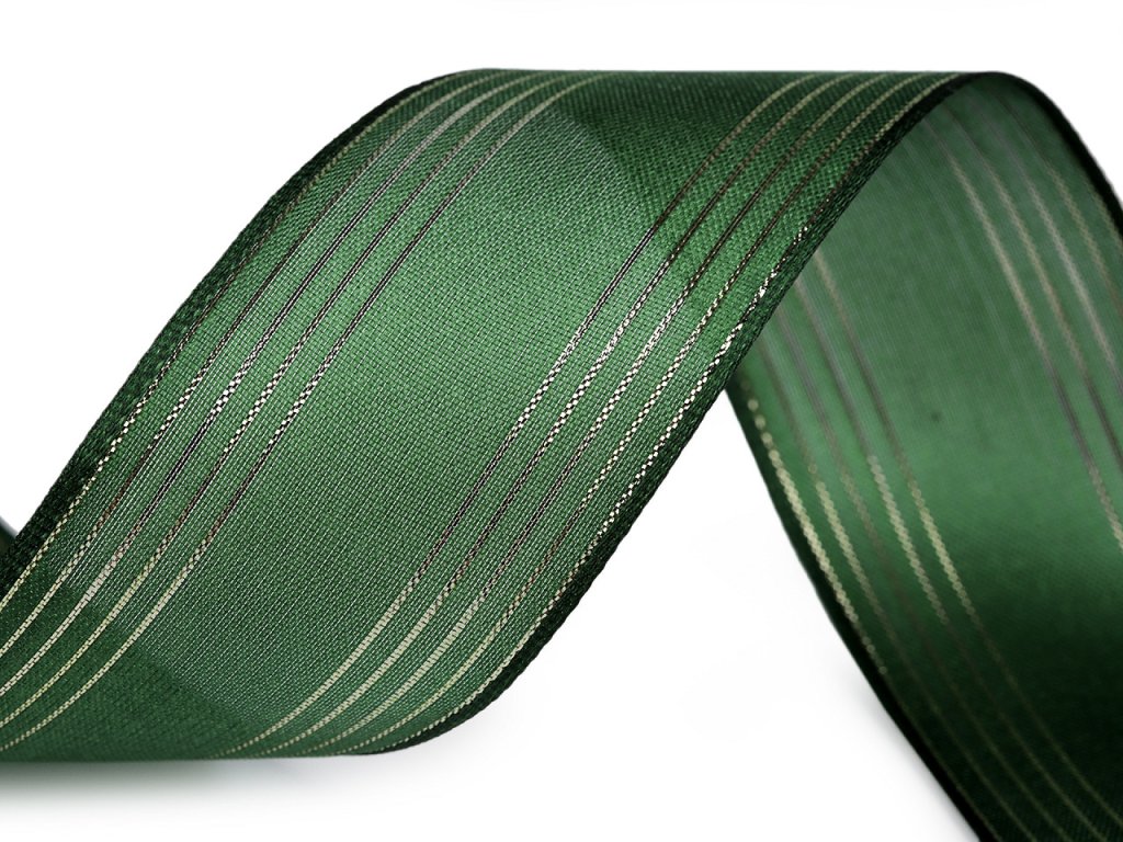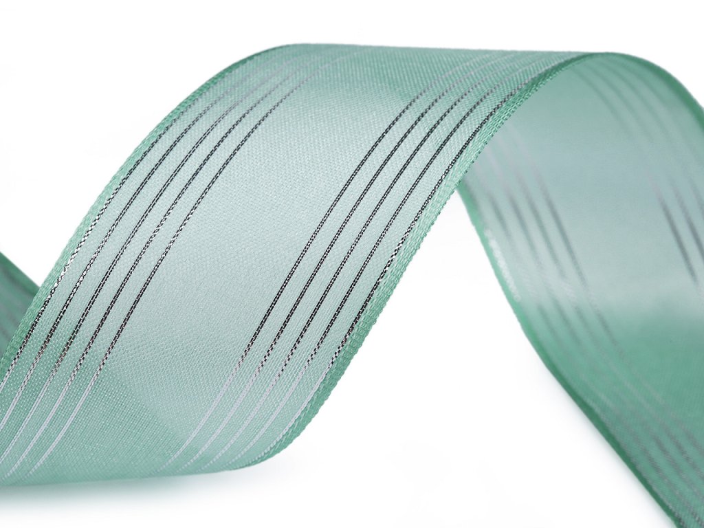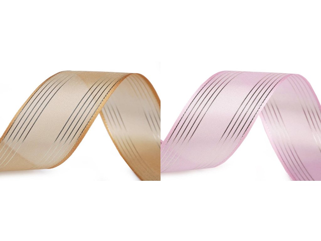 Dekorační stuhu zdobí lurexové pruhy. Díky nim se poutavě leskne. Stuha má pevné okraje, je jemně průsvitná, oboustranná. Použití: bude se perfektně vyjímat u vánočních dekorací, můžete ji použít na různé věnce, vazby nebo s ní originálně zabalit dárky.- Šíře: 40 mm