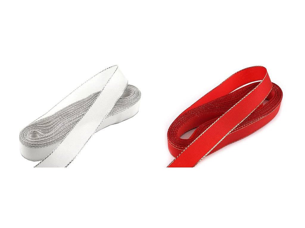 Taftová stuha s lurexem vás zaujme svým jemným elegantním třpytem. Lurex je po stranách, stuha je ideální pro zdobení dárkových balení, tvorbu ozdob na sváteční stůl, svatební dekorace a různé kreativní projekty. Podniková norma fa Stuha povoluje na 10 metrových návinech dva odstřihy, které jsou k sobě slepené, tolerance u 10 m návinů je +/- 10 cm.- Šíře: 15 mm