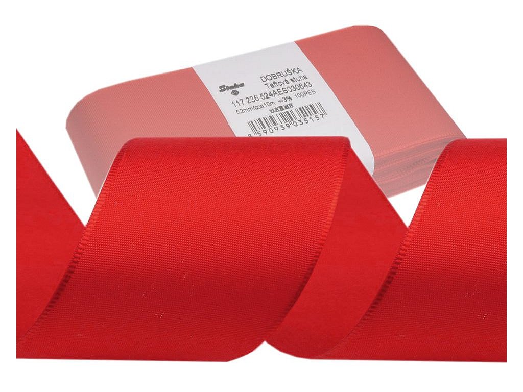Podniková norma fa Stuha povoluje na 10-ti metrových návinech dva odstřihy, které jsou k sobě slepené, tolerance u 10-ti m návinů je +/-10cm. Světlejší odstíny budou vždy širší, než tmavé odstíny a to z důvodu, že nelze z kapacitních a technologických důvodů barvit všechny barvy na jedné lince, proto se může šíře barevné stuhy srazit až o 5mm.Dodáváme v návinu po 10 m. Stuha může mít v návinu prostřih.- Šíře: 52 mm