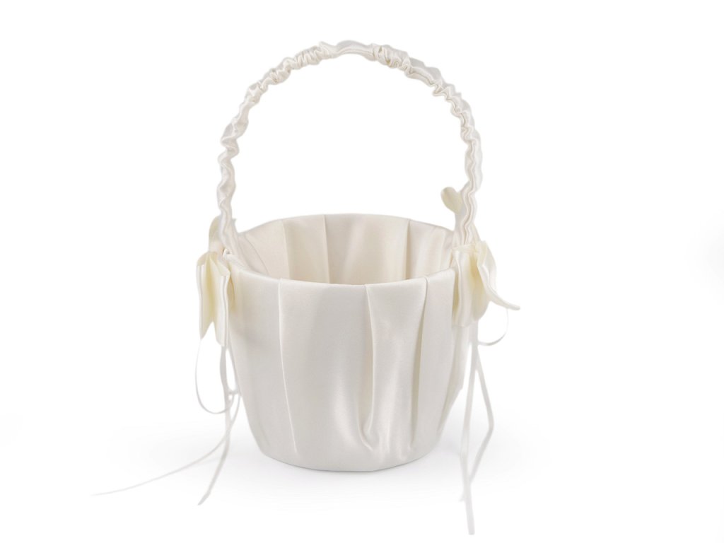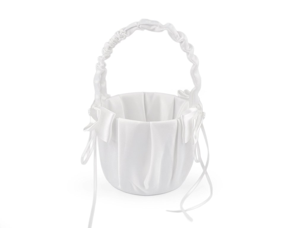 Elegantní saténový košíček je stylovým a klasickým svatebním doplňkem pro malé družičky. Uvnitř košíčku se budou vyjímat plátky růží nebo květinová aranžmá. Košíček je vyrobený z pevnějšího plastu. Po stranách ho zdobí saténové mašle. Oceníte jeho kvalitní provedení a smysl pro detaily.- Průměr: 12 cm