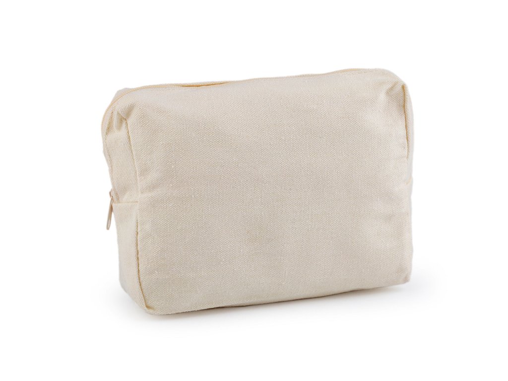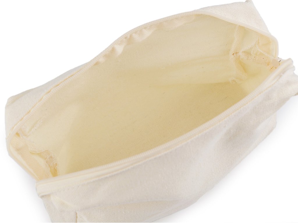 Textilní pouzdro využijete doma i na cestách. Zapíná se na zip. Je dostatečně prostorné, vejde se do něj vše potřebné. Můžete jej použít nejen na kosmetiku, ale je vhodné i na psací potřeby nebo jako příruční pouzdro na menší věci - je oblíbené na cestování, pomůže s organizací malých věcí v tašce i kufru. Můžete si jej dozdobit podle vlastní fantazie a vtisknout mu tak jedinečnou tvář. Je vhodné k malování barvami na textil, potisku, batikování, lze na něj vyšívat.- Rozměry (ŠxVxH): 17 x 12 x 5 cm