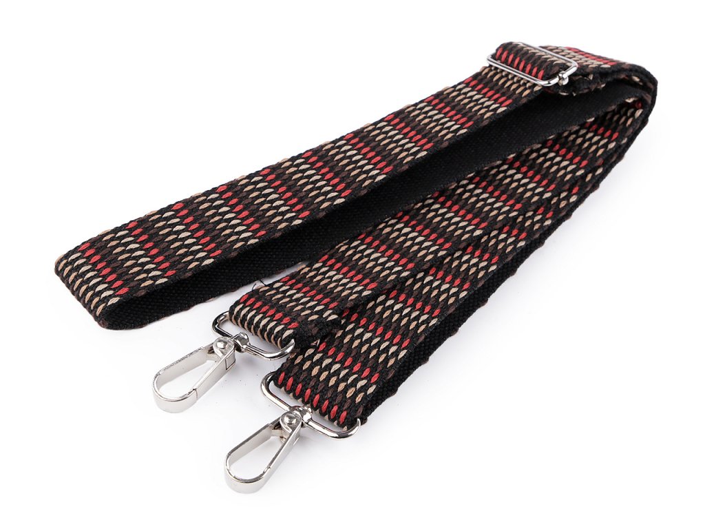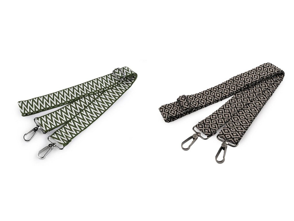 Textilní popruh má z každé strany kovovou karabinu, takže ho ke kabelce či tašce lehce připnete. Délku můžete regulovat.- Šíře: 3,8 cm
