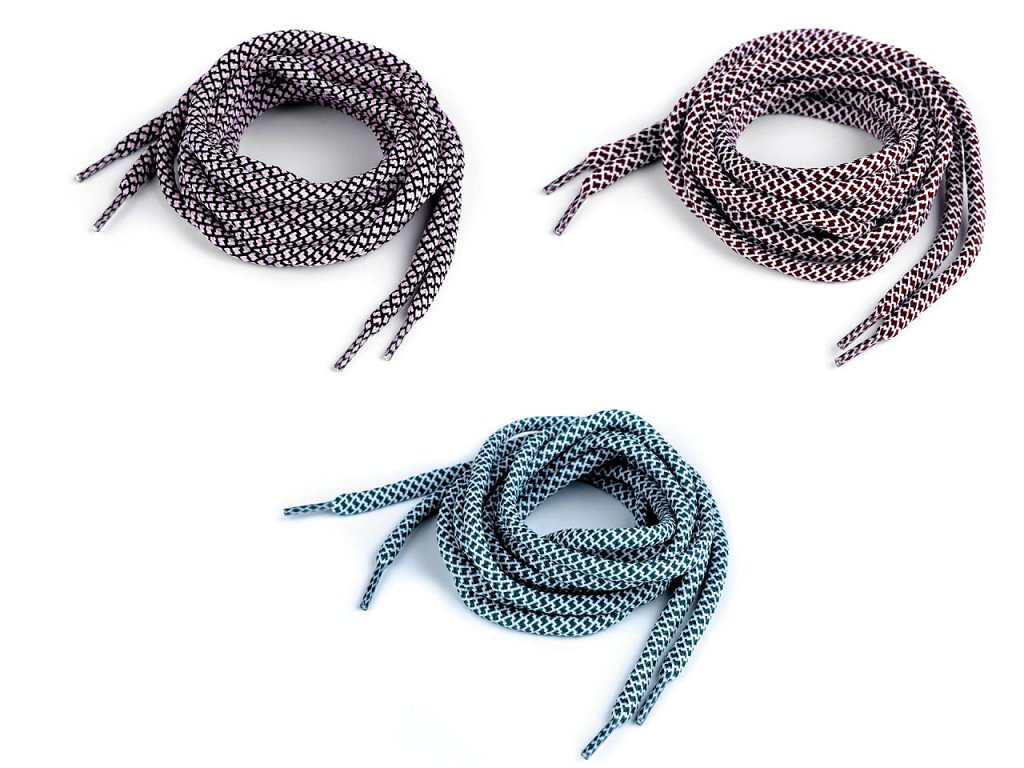 Tkaničky se vzorovaným opletem jsou vhodné do bot, ale také do tunýlků bund, mikin, tepláků a jiných oděvů. Jsou opatřené koncovkami.- Průměr: 5 mm