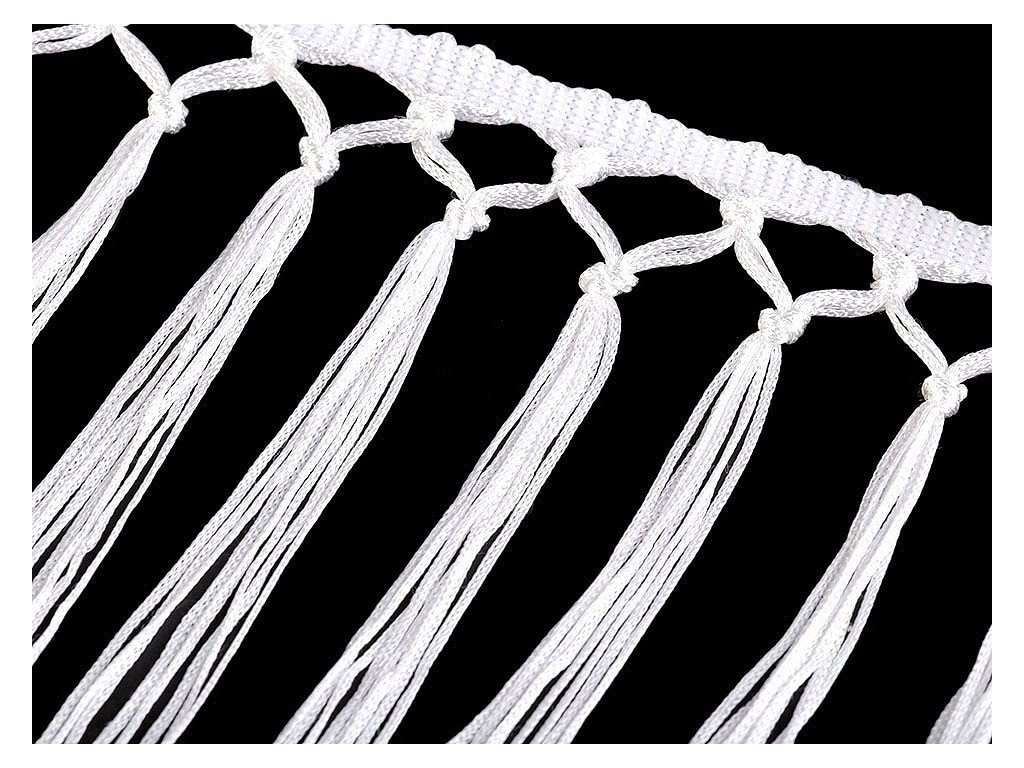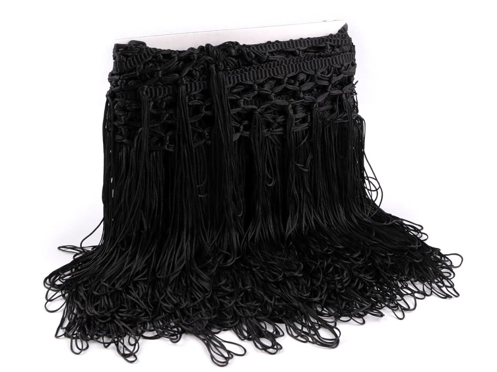 Ozdobné třásně jsou jemné a pevné. V horní části jsou spojené drhanými uzlíky, díky kterým získaly zajímavý design. Zároveň tím vznikají dlouhé střapce. Použití: Třásně mají velké využití u tanečních, divadelních a karnevalových kostýmů, protože perfektně kopírují každý pohyb a vypadají velice působivě. Z třásní si můžete vyrobit i originální náhrdelník.- Šíře: 25 cm