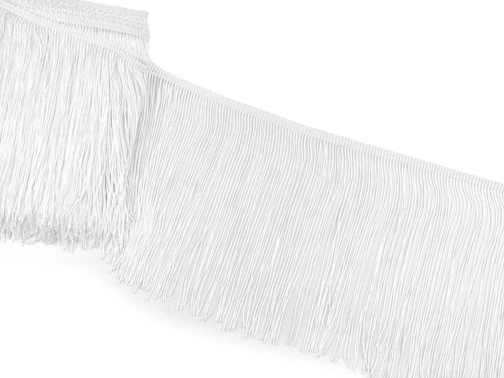 Třásně využijete na ozdobení bytových doplňků, závěsů, ale také kostýmů (divadelních, karnevalových i tanečních), kde přidají pohyb a dynamiku.- Šíře: 25 cm