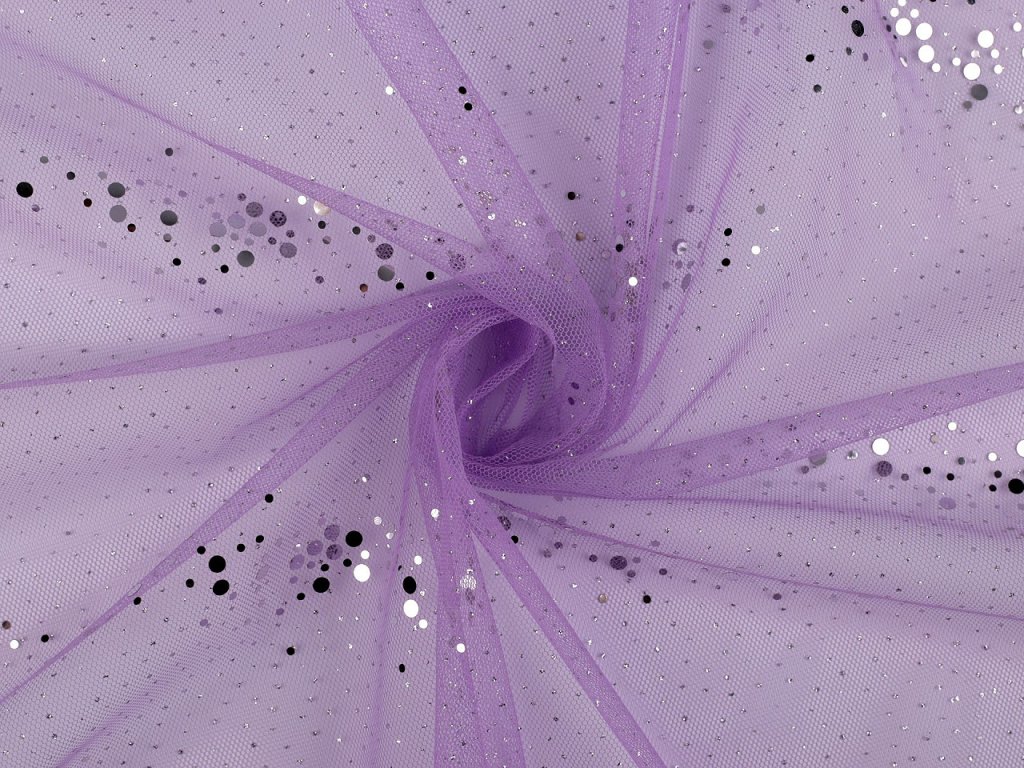 Tyl zdobí lesklé flitry, které z něj neopadávají. Je jemný, krásně splývá. Využijete ho na karnevalové kostýmy, šití sukní apod. Je vhodný také na různá aranžmá.Pruží po šíři. Průměr oka je cca 1 mm.- Gramáž: 30 g/m²