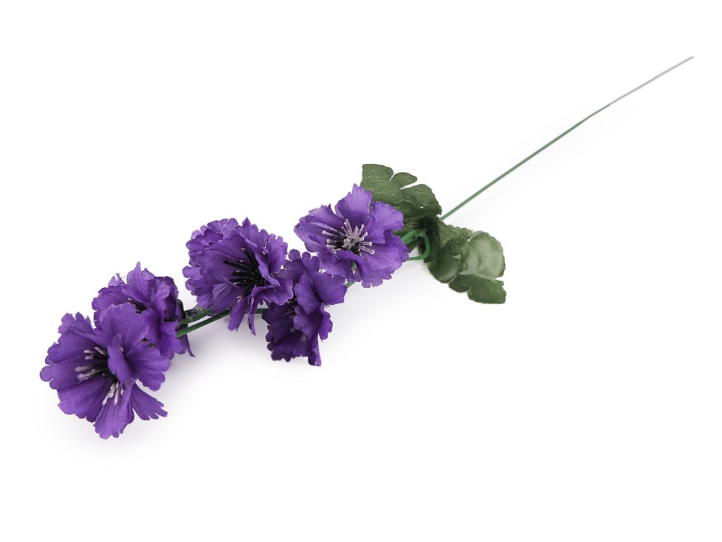 Umělá chrpa je vhodná na různá aranžmá, například do květinových vazeb, věnců, ikeban, košíků, váz apod. Jednotlivé květy (4 ks) můžete zakomponovat i do věnečků do vlasů. Uvnitř stonku je drát.- Délka: 56 cm