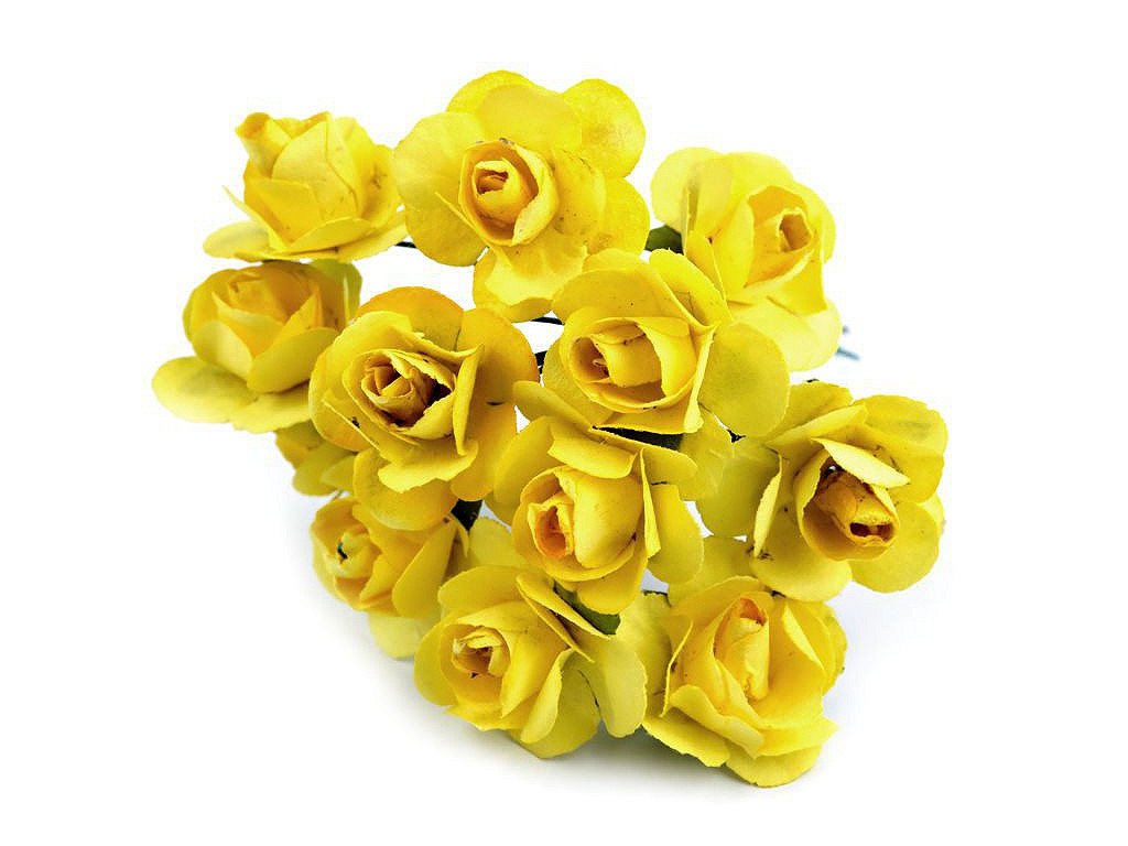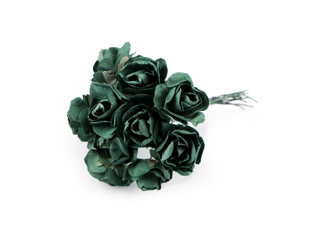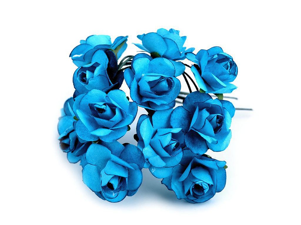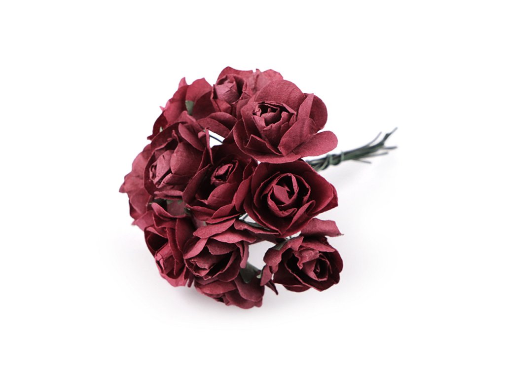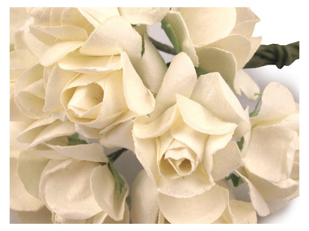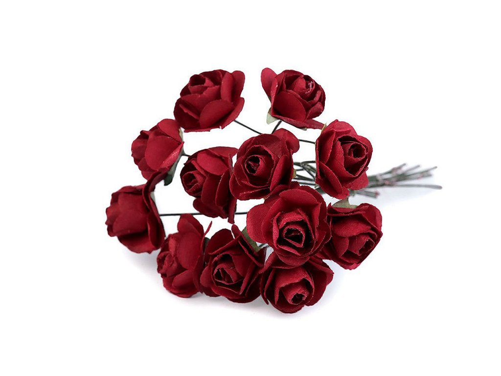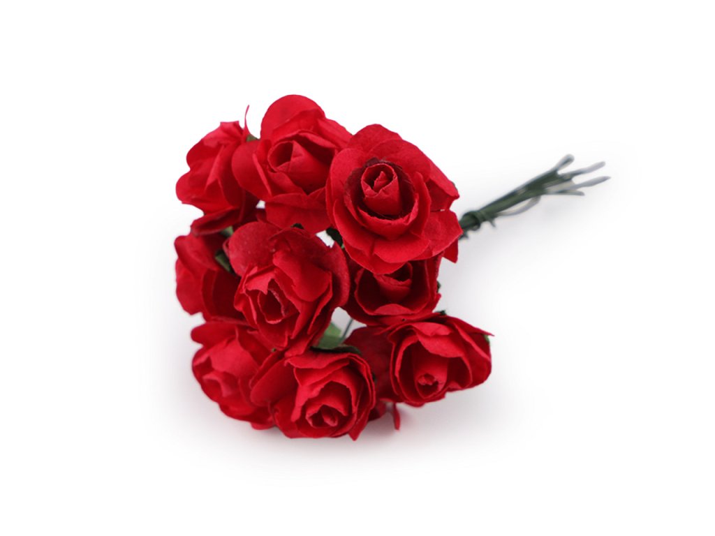 Kvalitní papírové růže mají jemný romantický vzhled. Jako stonek slouží ohebný drát. V jednom svazku je 12 ks růží. Použití: Růže jsou vhodné na různá aranžmá a voničky. Vyniknou na věncích, ikebanách apod. Růžičky můžete použít i jednotlivě, například na scrapbooking a ozdobit jimi foto rámečky, alba, pozvánky nebo přání. Využijete je také například na výrobu čelenek a fascinátorů do vlasů. Odstíny barev růží se mohou mírně lišit.- Průměr květu: 1,5 - 2 cm