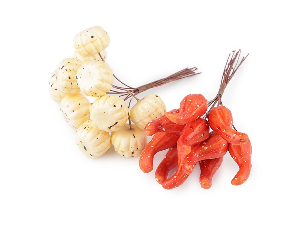 Dekorační mini dýně vyniknou v podzimních a dušičkových vazbách, věncích apod. Drátek, ke kterému jsou připevněné, umožňuje snadnou manipulaci a upevnění do různých aranžmá.