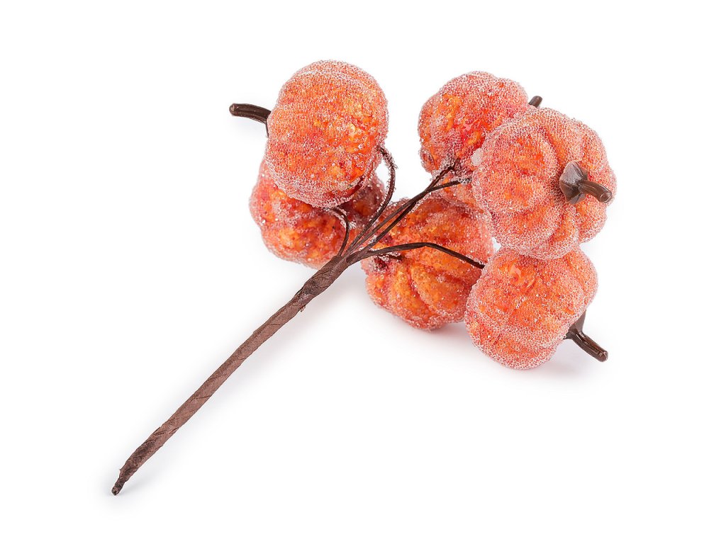 Dekorační dýně jsou ideální pro vytvoření sezónních dekorací a aranžmá. Zpestřují je drobné transparentní kuličky, které vytvářejí dojem ledu. Dýně vyniknou zakomponované na věncích, v truhlících, květináčích, květinových vazbách apod. Drátek, ke kterému jsou připevněné, umožňuje snadnou manipulaci a upevnění do různých aranžmá.- Průměr: 3,5 cm