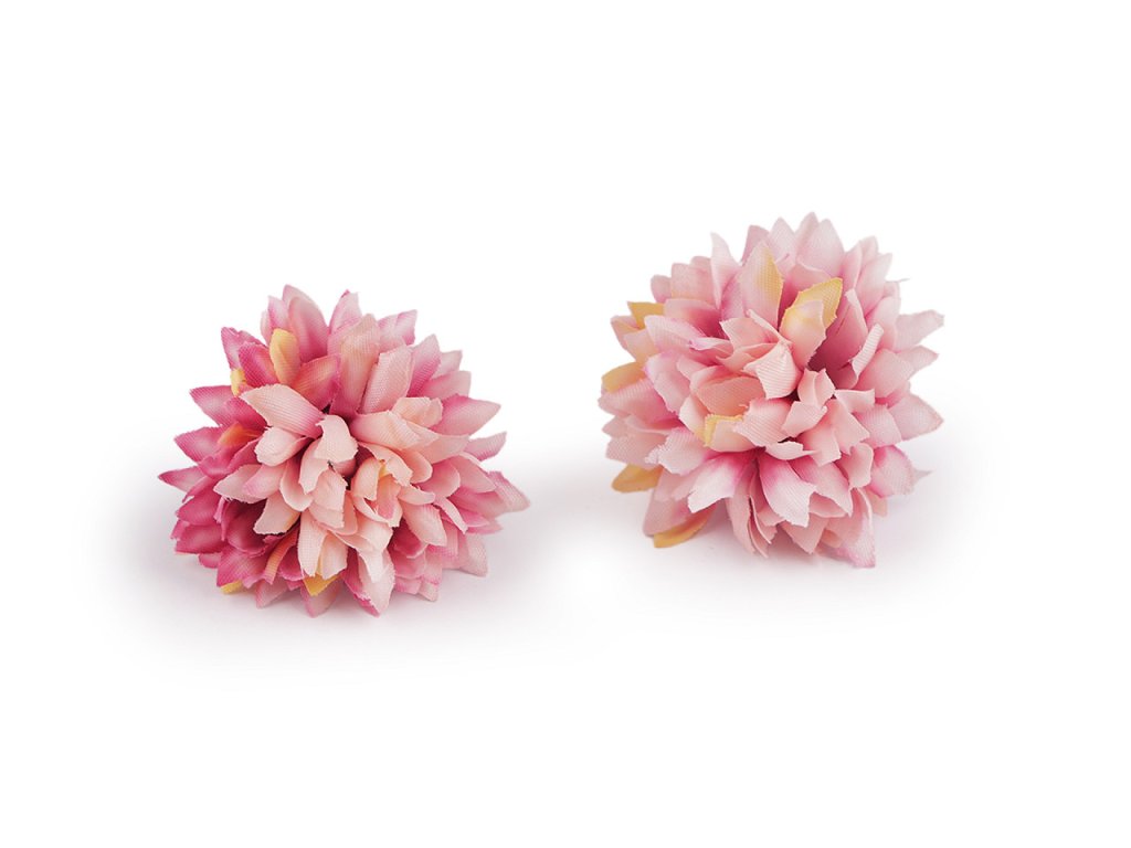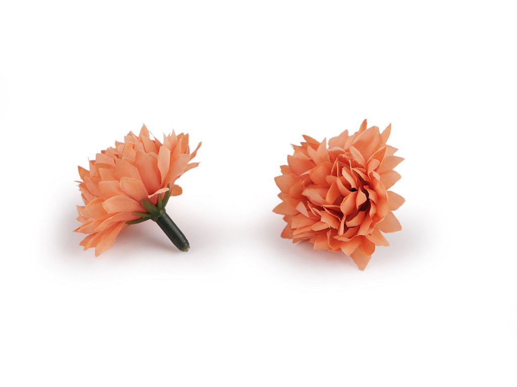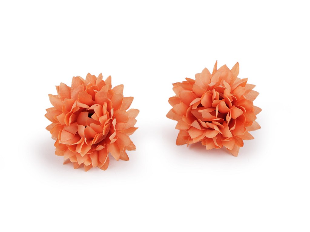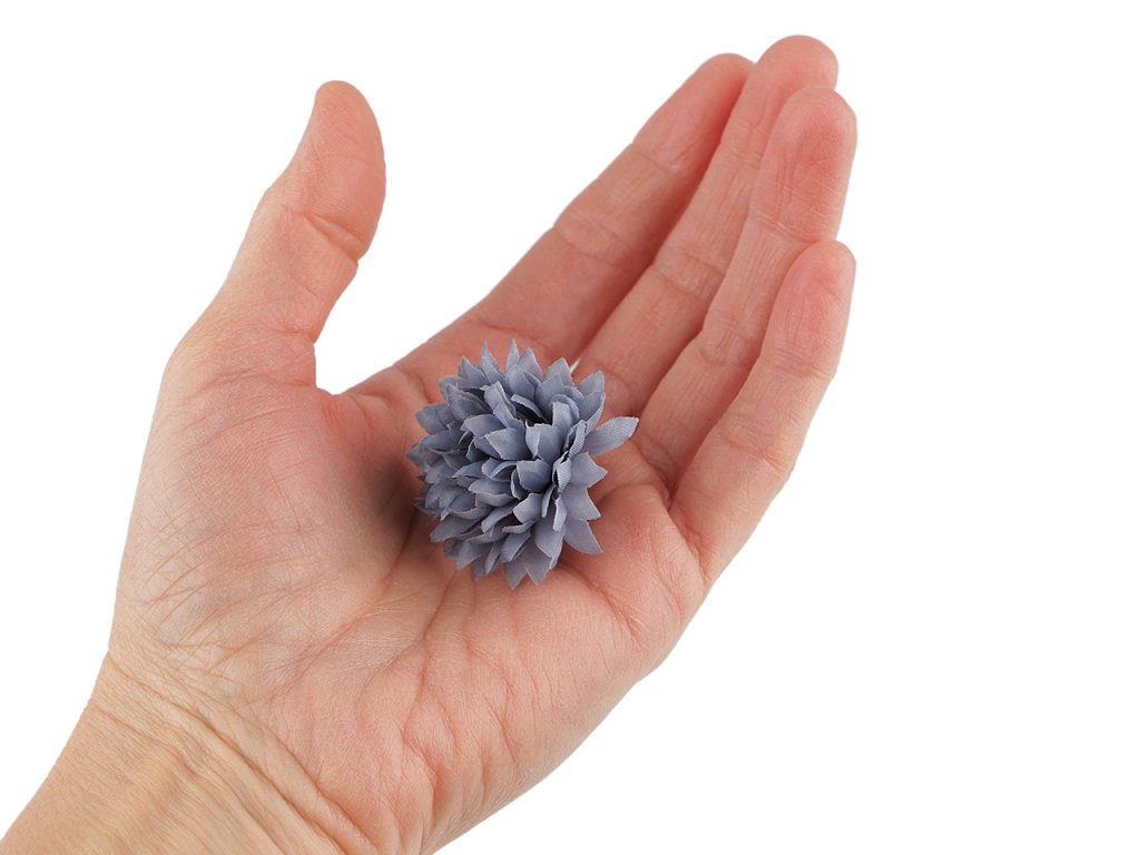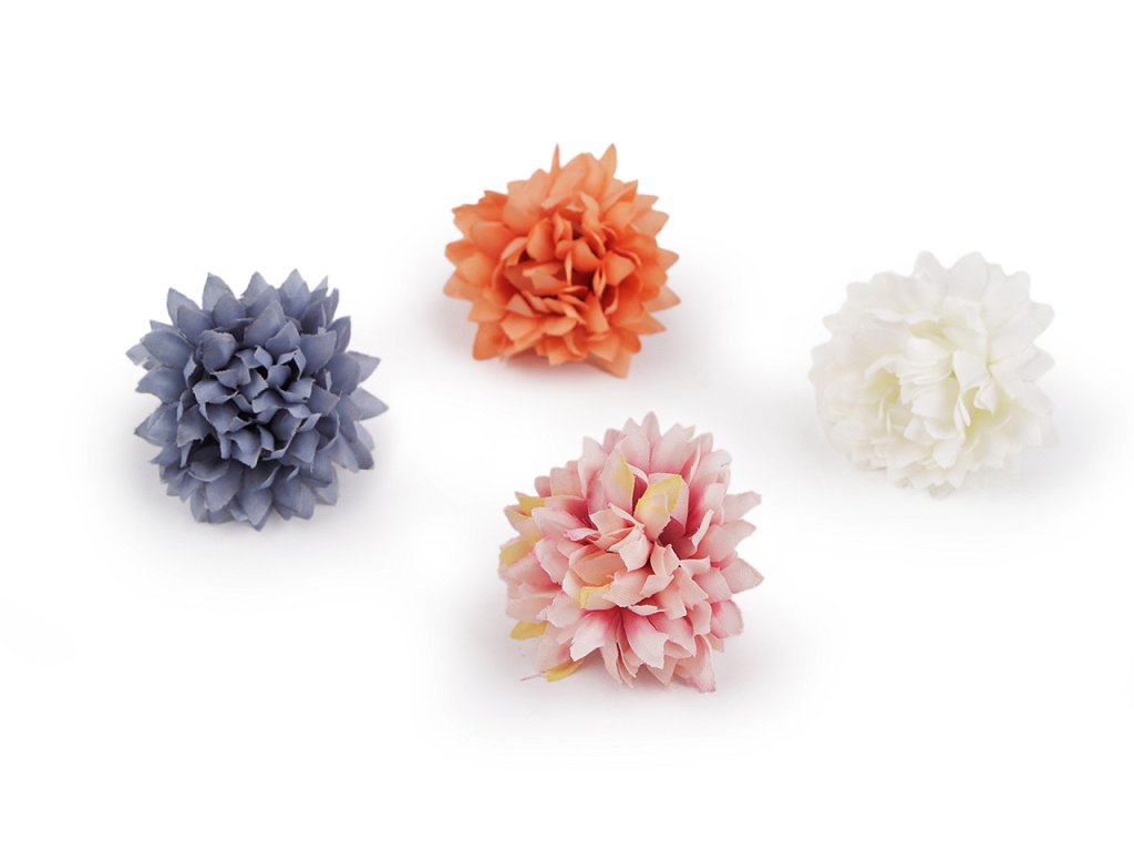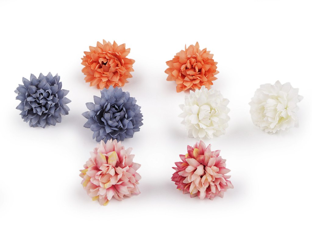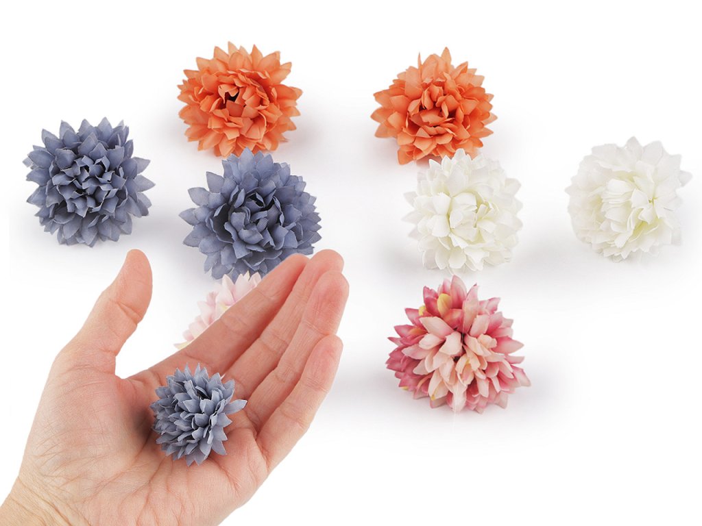 Umělé květy využijete k aranžování květinových vazeb, ikeban či věnců. Můžete je také použít k dozdobení věnečků do vlasů, čelenek, fascinátorů i sponek. Okvětní lístky květů jsou textilní. Do stonku lze zasunout drát s průměrem 2 mm.- Průměr: 4 cm